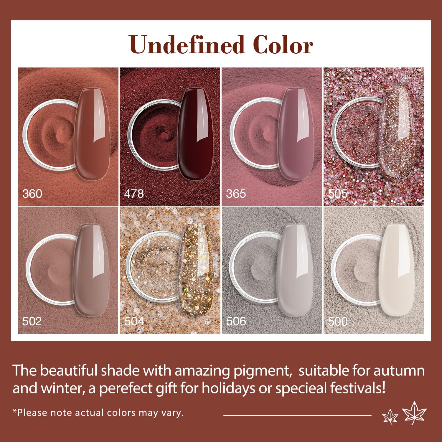 AZUREBEAUTY 30Pcs Dip Powder Nail Kit Starter with Nail Sticks, 8 Colors Fall Winter Nude Brown Glitter, Dipping Powder Liquid Set with Matte/Base/Top Coat Activator for French Manicure Salon