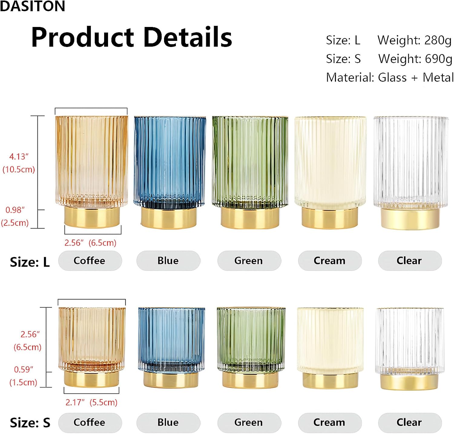DASITON Makeup Brush holder Organizer,Crystal Cosmetic Makeup Brush Glass Brushes Storage Holder, Vintage Make Up Brush Cup Pen Pencil Holder striped vase(Cream S)