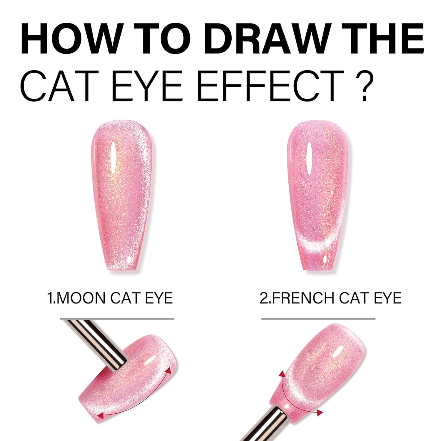 - CAT EYE STYLE - This cat eye gel nail polish is enriched with colorful gold glitter, which can be applied in 1 thin coat to create a shimmer layer of glitter that can be used either as a cat's eye effect or with other color gels.