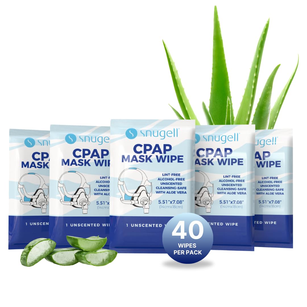 Snugell Unscented Individual CPAP Mask Wipes – Travel-Friendly 40-Pack– Lint & Alcohol-Free,Skin-Safe with Aloe Vera– Perfect for Convenient, Hassle-Free Cleaner & Sanitizer of CPAP Masks & Equipment
