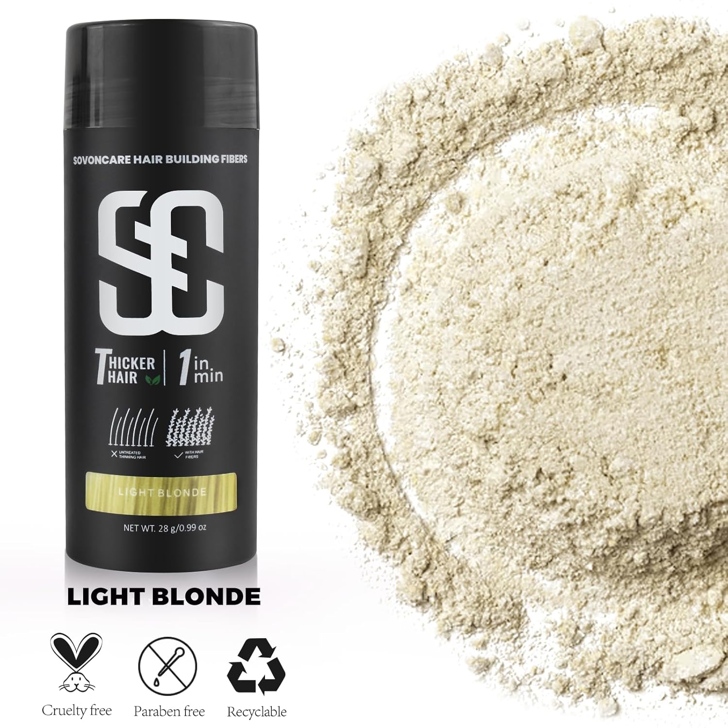 SOVONCARE Hair Fibers for Thinning Hair Light Blonde, Hair Building Fibers for Bald Spots Undetectable & Natural, Conceals Hair Loss Fill In Fine Hair Powder Hair Thicker Instantly for Women & Men 28g