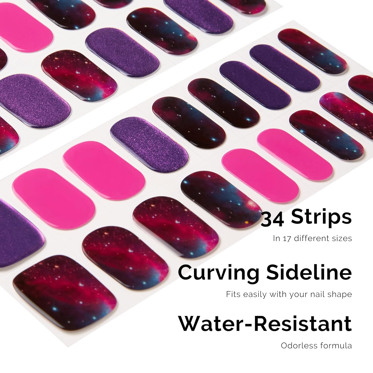 NAILOG Semi Cured Gel Nail Strips 34 pcs| Buy 2 Get 1 UV Lamp | Long Lasting Nail Polish Sticker Wraps with Glossy Gel Finish, Lost in Galaxy