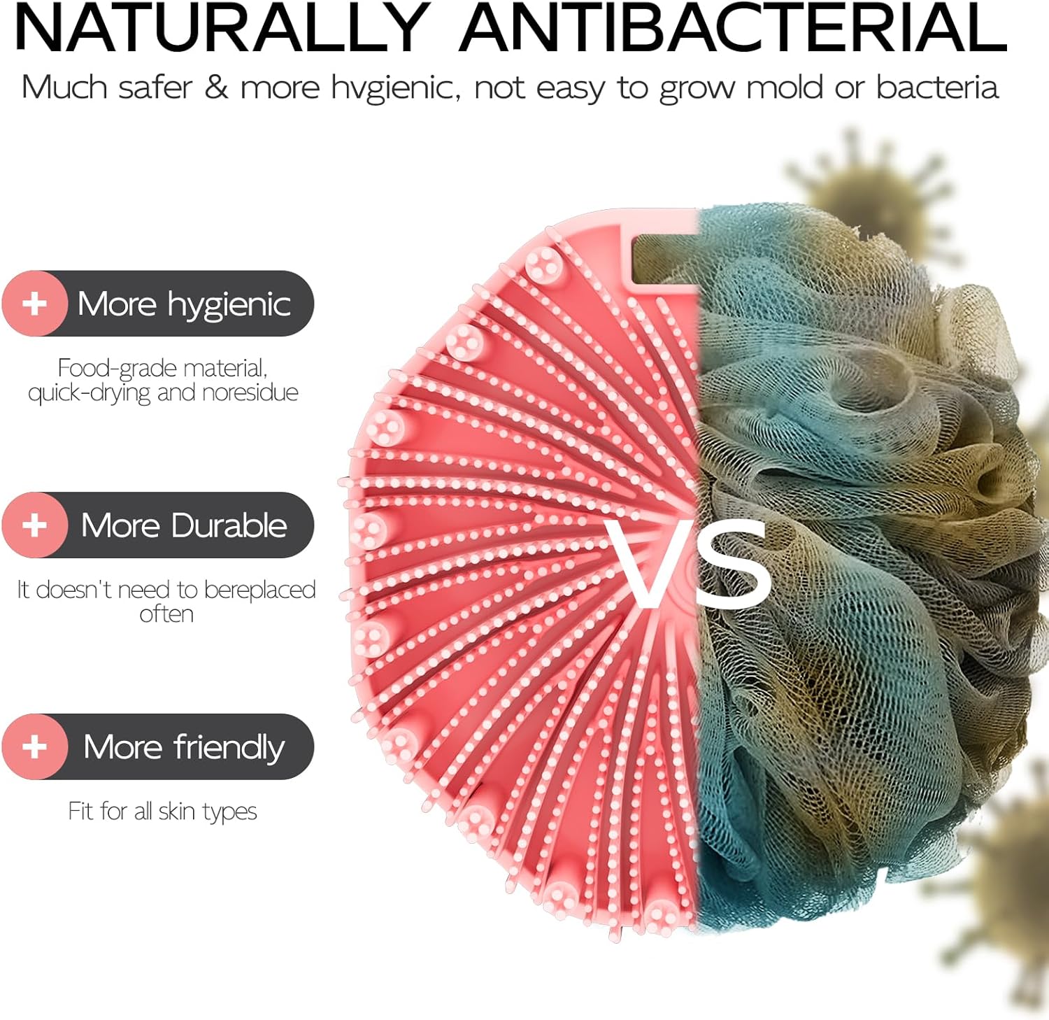 - ECO-FRIENDLY SILICONE: Crafted from safe and durable food-grade silicone, our body bath scrubber is gentle on your skin while still offering effective exfoliation and cleansing.