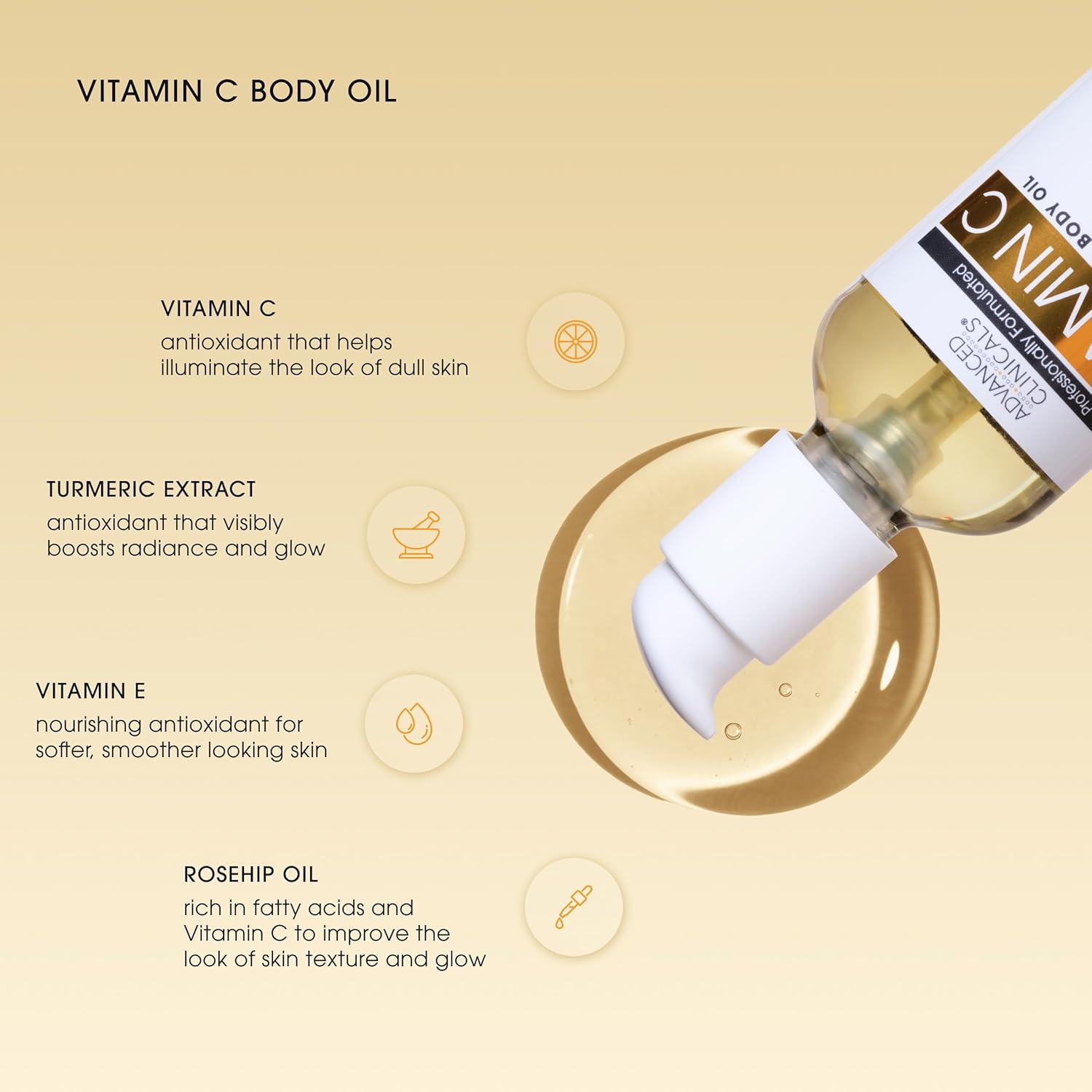 Advanced Clinicals Vitamin C illuminating Body Oil For Women & Men |Vitamin C Oil Skin Care Body Moisturizer With Vitamin E + Botanicals To Help Improve Appearance Of Dark Spots + Dry Skin, 2 Piece