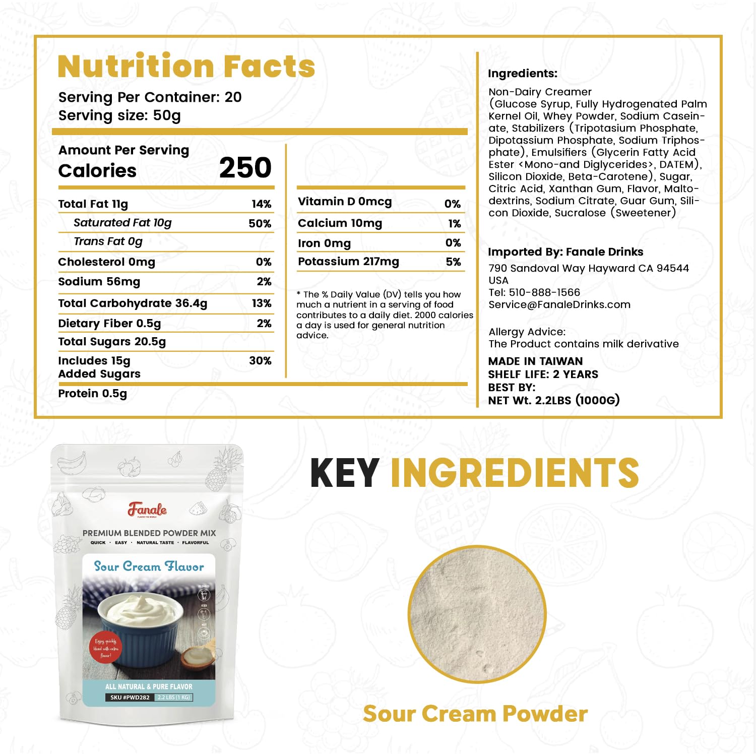 Fanale Premium Sour Cream Mix Bubble Tea Flavoring Powder | Perfect for Baking, Smoothies, Desserts and Drinks | Instant Flavoring Powder for Boba Milk Tea - 2.2 Pounds (Pack of 20)