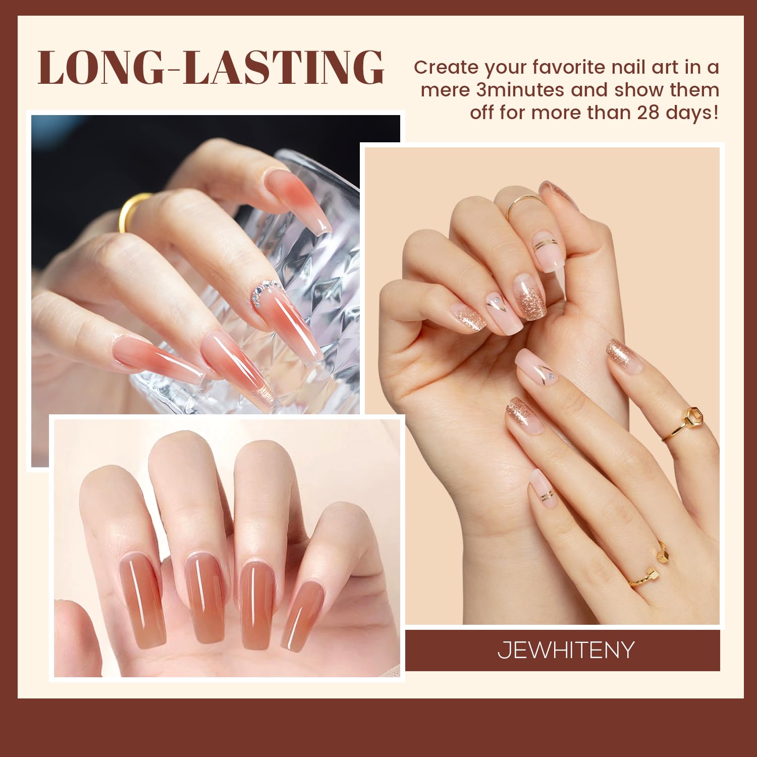 - Long-lasting Wear: Professional glue formula, to ensure that the poly nail gel stickers and nails close fit, to maintain more than 4 weeks of long-lasting wear and tear is not easy to fall off, so that your manicure long-lasting bright.