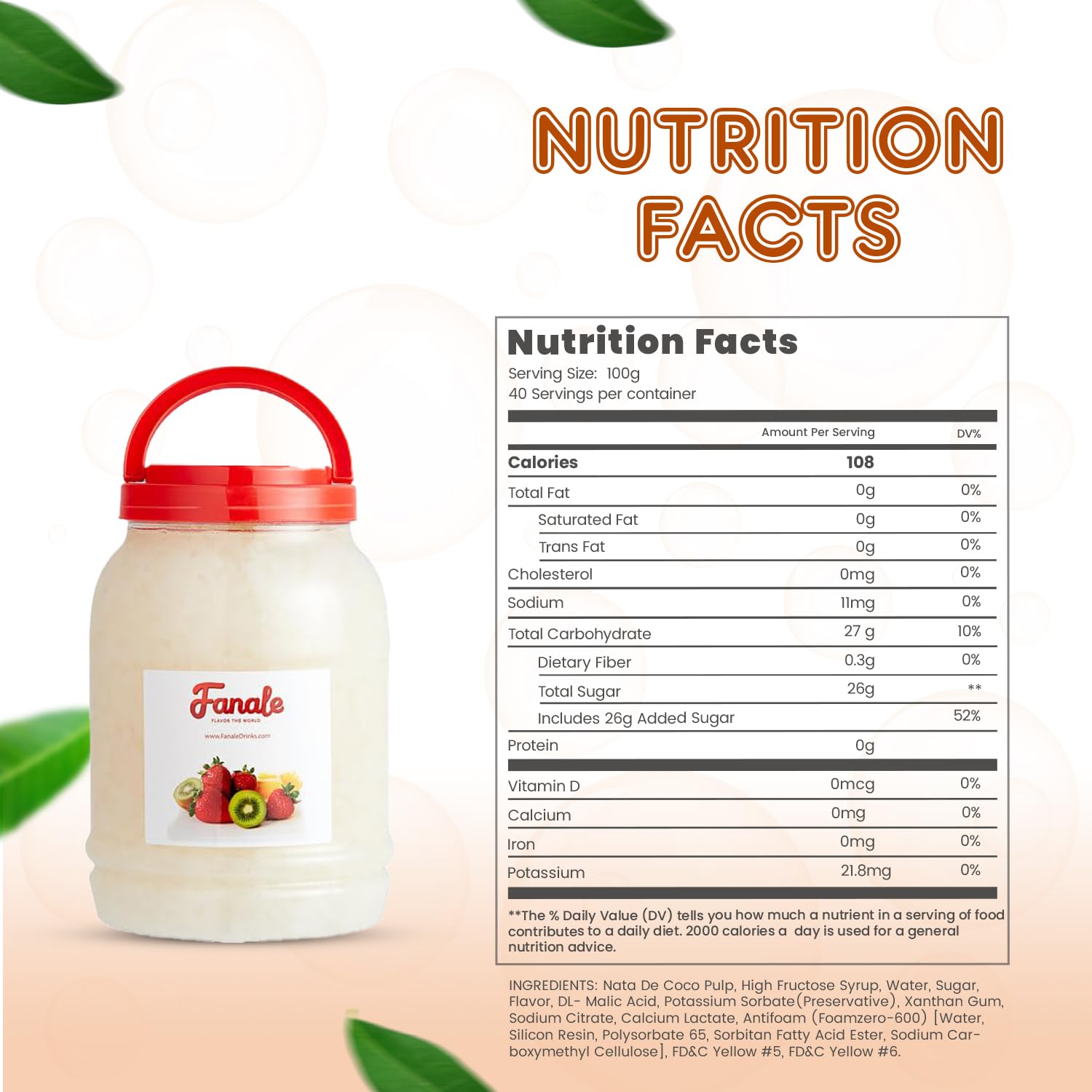 - ๐๐ฎ๐ญ๐ซ๐ข๐ญ๐ข๐จ๐ฎ๐ฌ ๐๐ง๐ ๐ซ๐๐๐ข๐๐ง๐ญ๐ฌ: Our nata de coco jelly topping is made from the inner layer of coconut meat, making it delicious and nutritious. The coconut boba tea jelly topping retains many vitamins, minerals, and fiber inherent to coconut, making it a healthier option than many artificial or processed toppings.