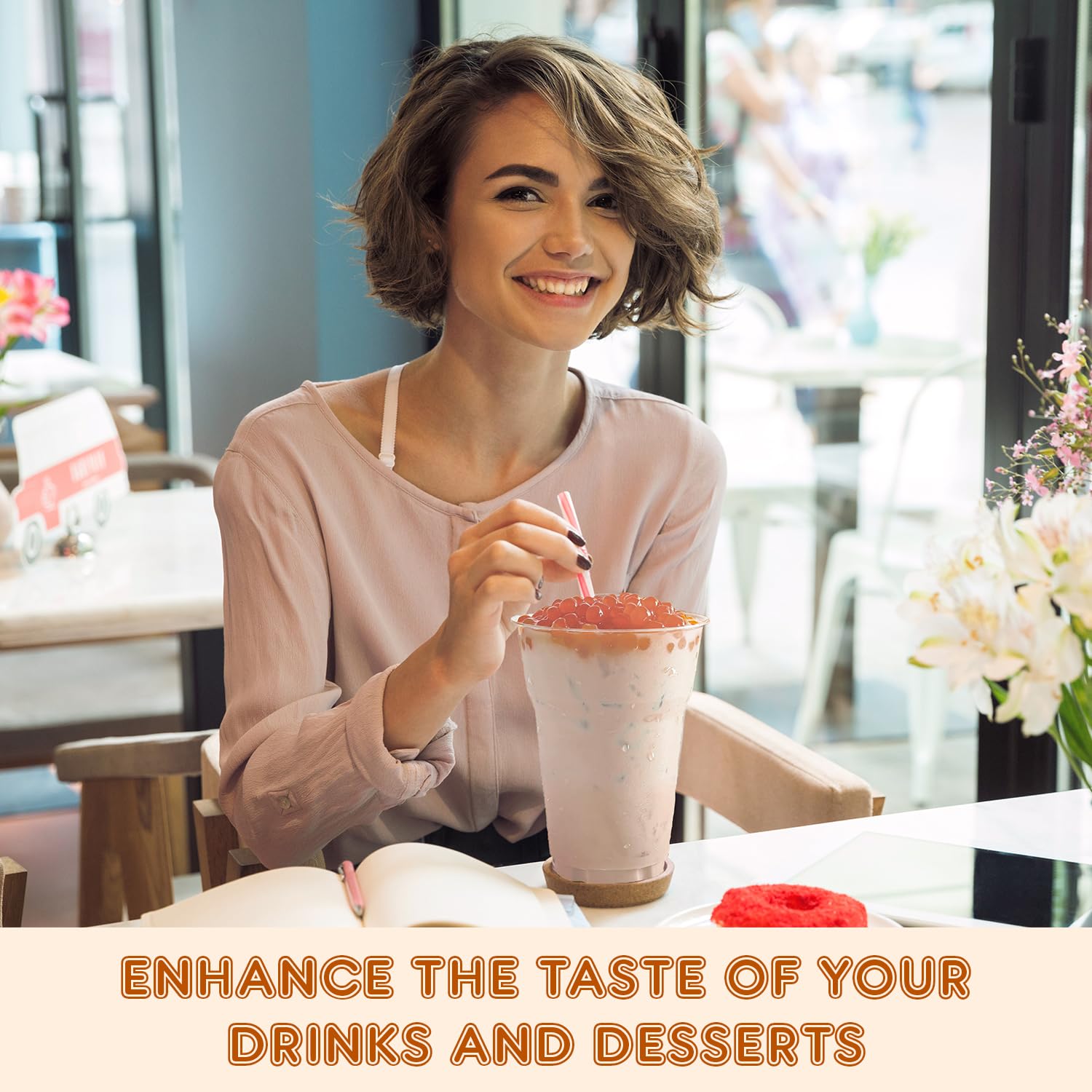 - ๐๐ง๐ซ๐ข๐๐ก๐๐ ๐๐ข๐ญ๐ก ๐๐ฎ๐ข๐๐ฒ ๐๐จ๐จ๐๐ง๐๐ฌ๐ฌ: The fruit boba pearls are filled with natural and organic Lychee goodness. You get a juicy, mouthful taste of Lychee with every bite and slurp of your favorite beverages.