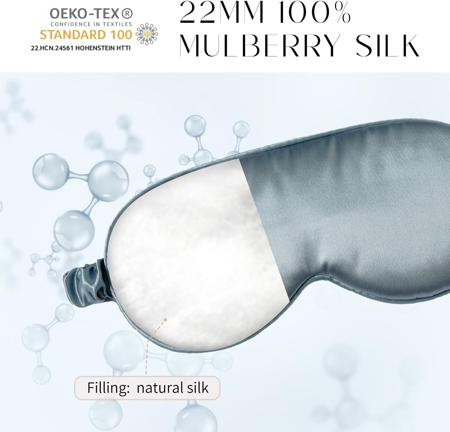 - 【LUXURY 3D SILK SLEEP MASK】Our exquisite 3D silk eye mask is designed for comfort. It is made of 22 momme mulberry silk on both sides, filled with 100% silk instead of satin, providing a luxurious and skin friendly touch. Experience the natural happiness of silkworms and enjoy the most peaceful sleep.