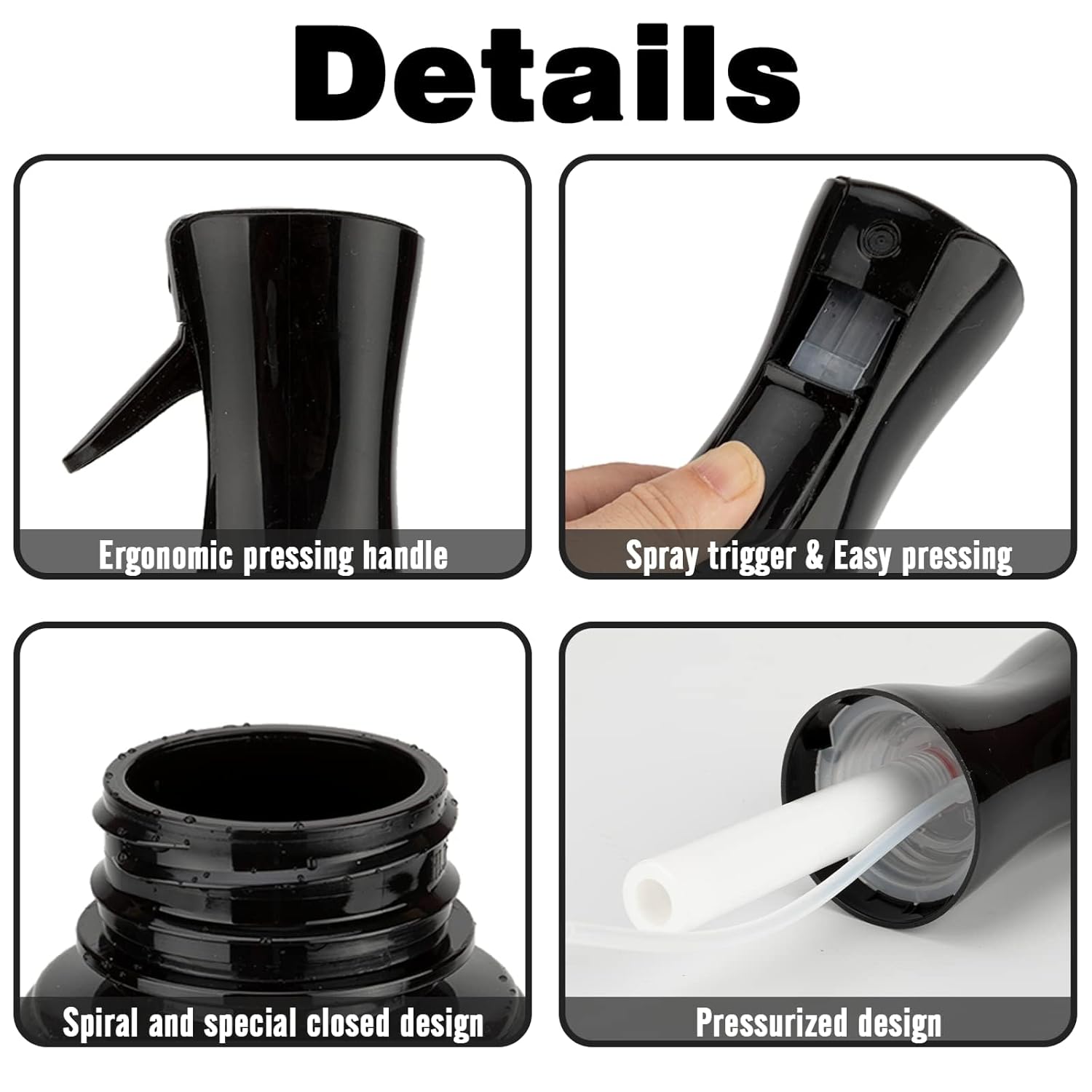 Spray Bottle for Hair (6.8OZ /200ML) Continuous Ultra Fine Mist Sprayer for Hair, Salons, Barber, Plants, Skin Care, Cleaning 2 Pack Black