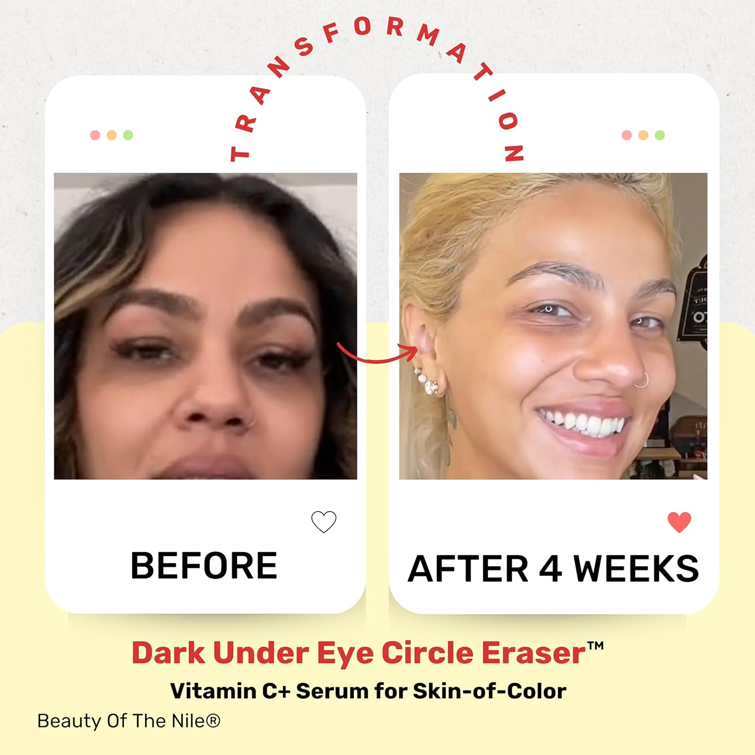 Dark Under Eye Circle Eraser™ Vitamin C+ Serum for Skin-of-Color, Dark Circle Puffiness Wrinkle Hyaluronic Acid Superoxide D, Beauty of the Nile® 1 Oz