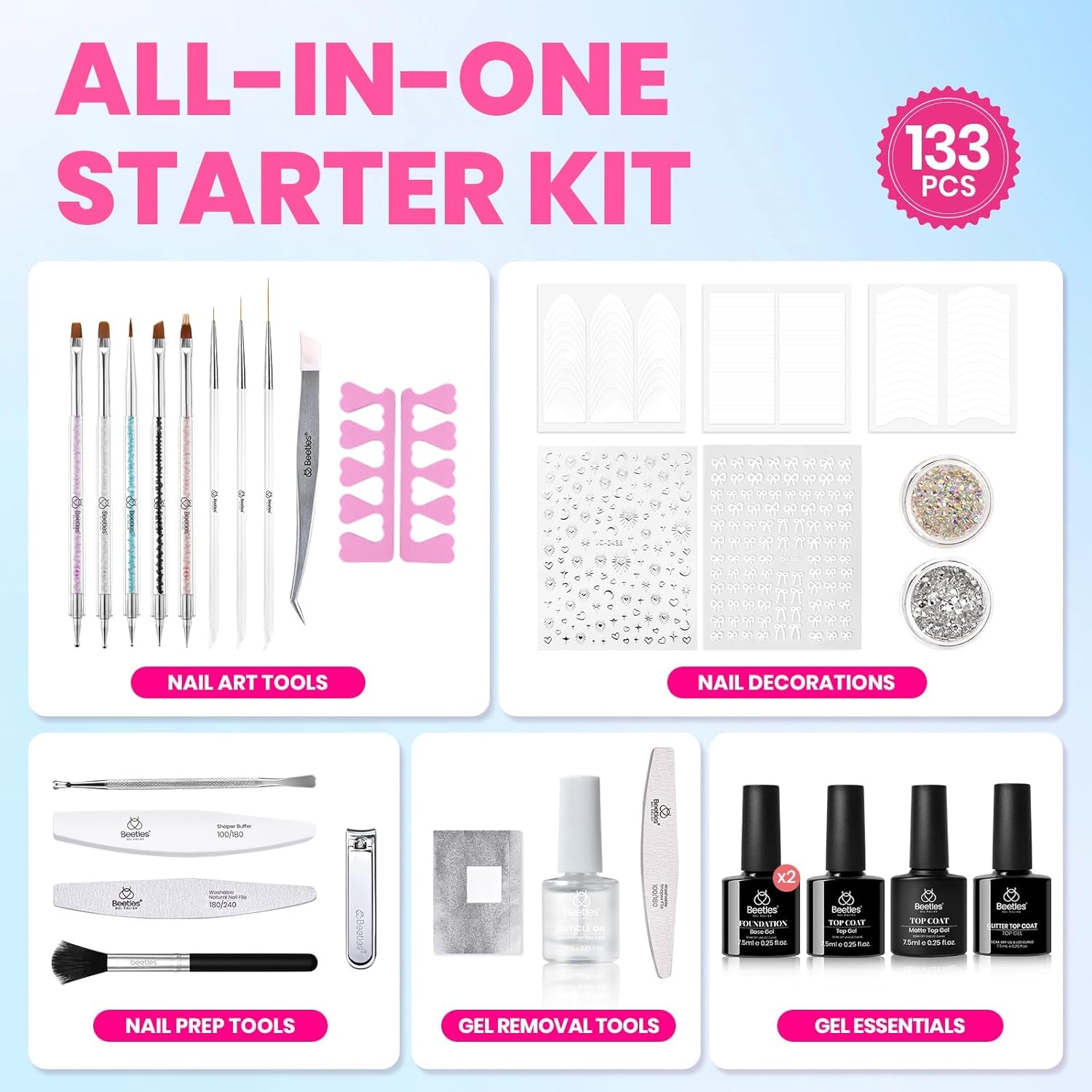 Beetles Gel Nail Polish Kit with U V Light, 100 Colors Gel Polish 133 Pcs Nail Stuff Kit for All Seasons with Base and Matte&Glossy Top Coat Infinite Inspirations Soak Off Gifts for Women Girls Teen