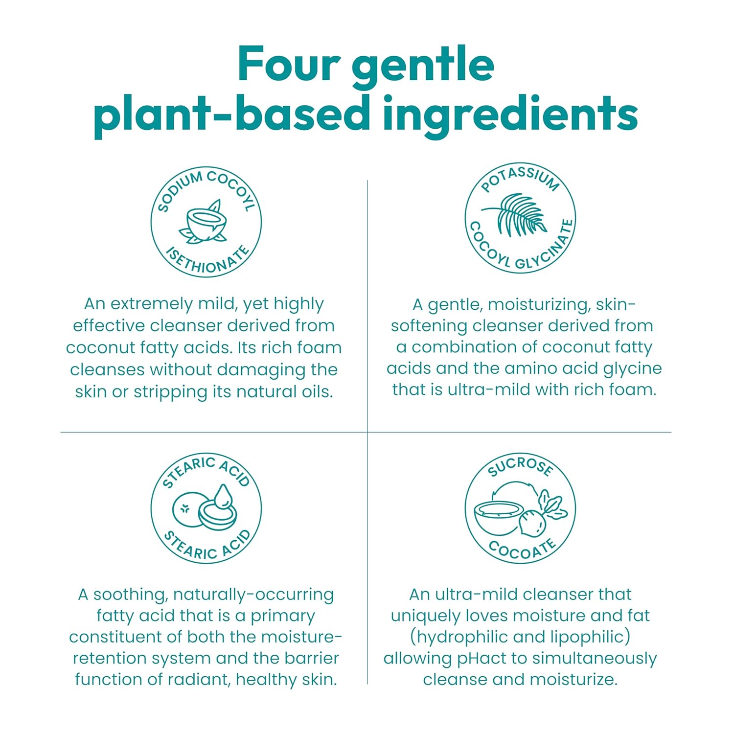 - pHact is a unique soap-free, moisture-rich, natural skin pH cleansing bar. Its rich lather provides a gentle, yet highly effective cleansing experience that will not dry or irritate the skin. pHact contains no harsh chemicals and no additives of any kind. It is made with only four plant-based ingredients and to demonstrate its remarkable mildness, it is uniquely dermatologist, pediatrician, ophthalmologist and gynecologist tested.