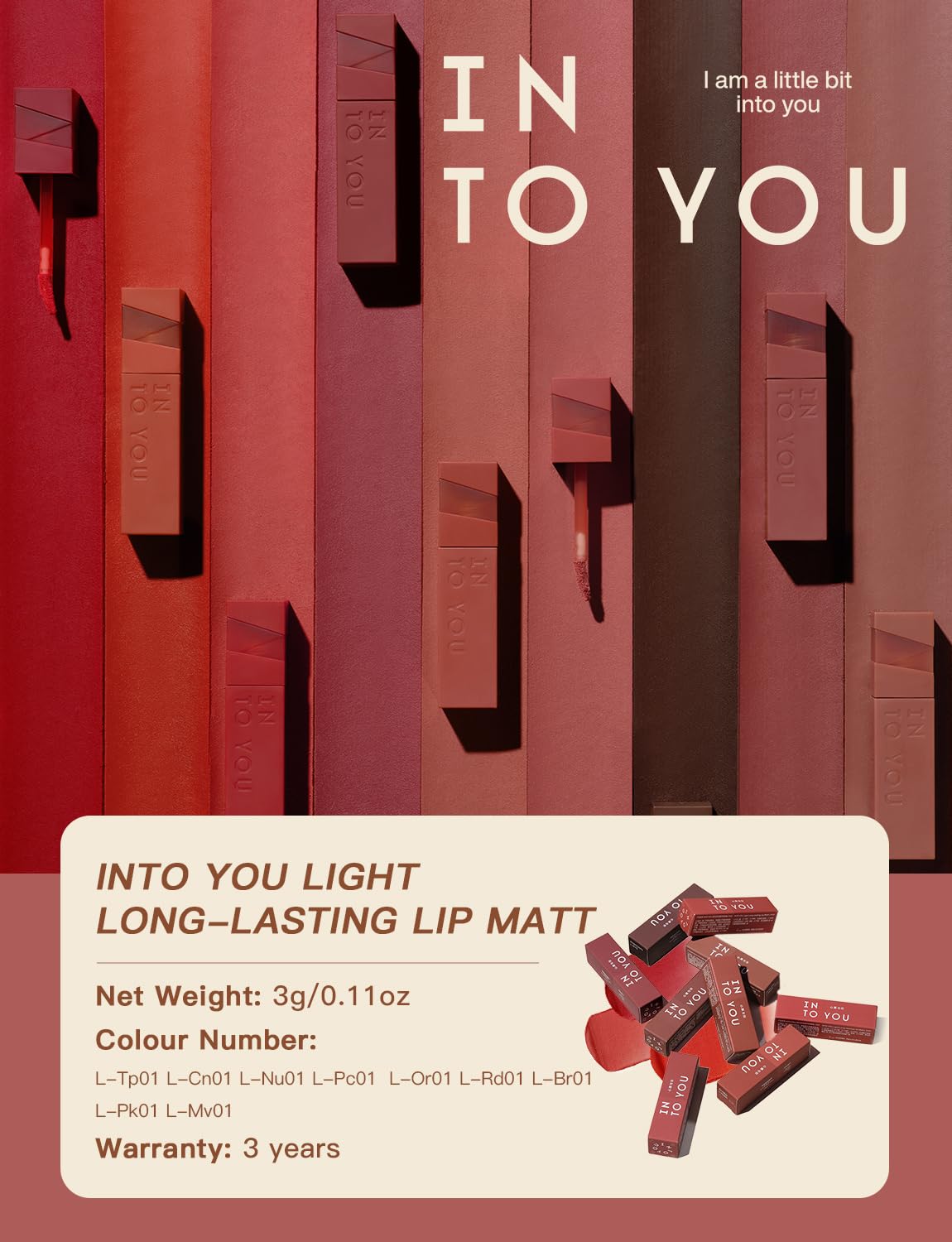 INTO YOU Matte Velvet Lip Stain Long Lasting Waterproof Lipstick Makeup Moisturizing Lipstick for Women(L-Or01)