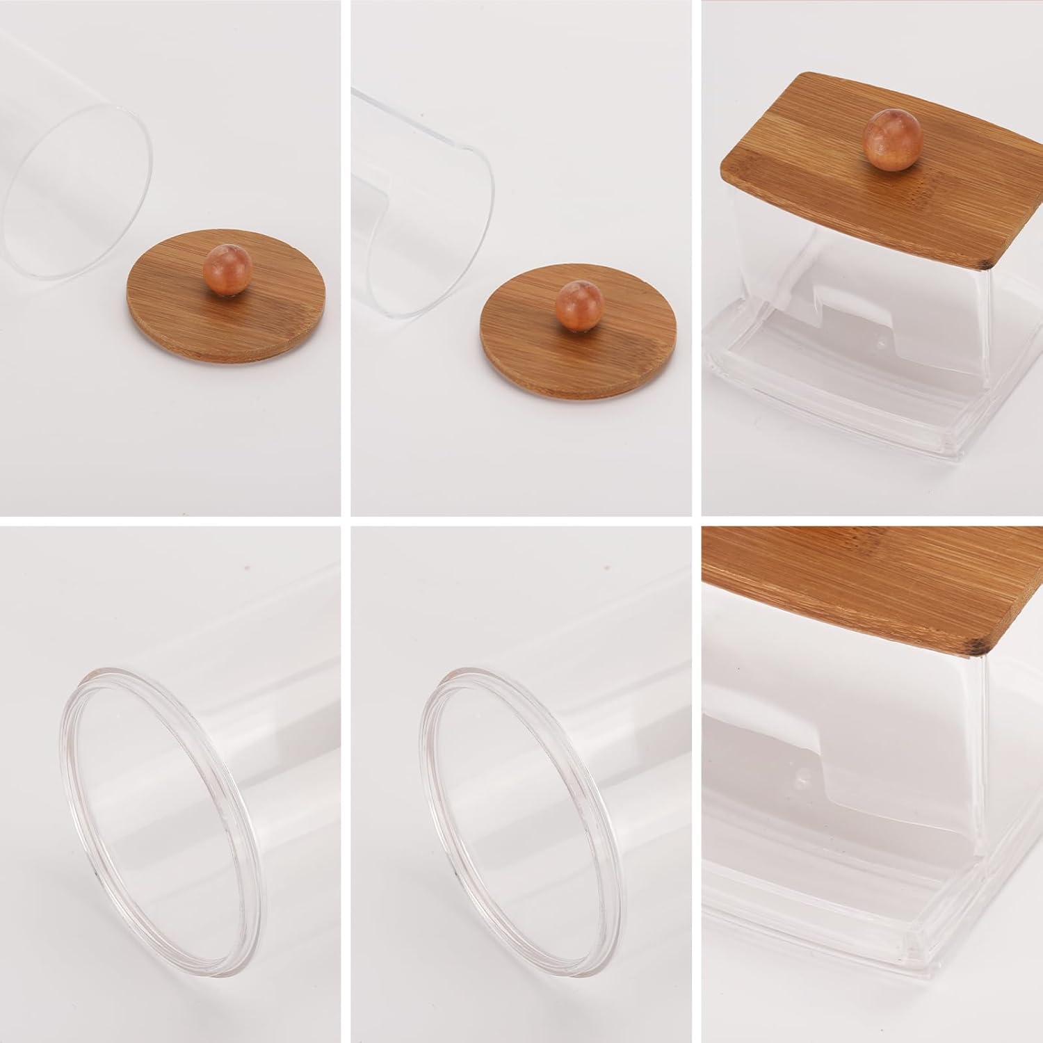 Tbestmax Bathroom Organizer Accessories Set-10 oz,7 oz Qtips Holder Storage with Bamboo Lids, Cotton Ball/Swabs Dispenser, Apothecary Jar 3 Pcs