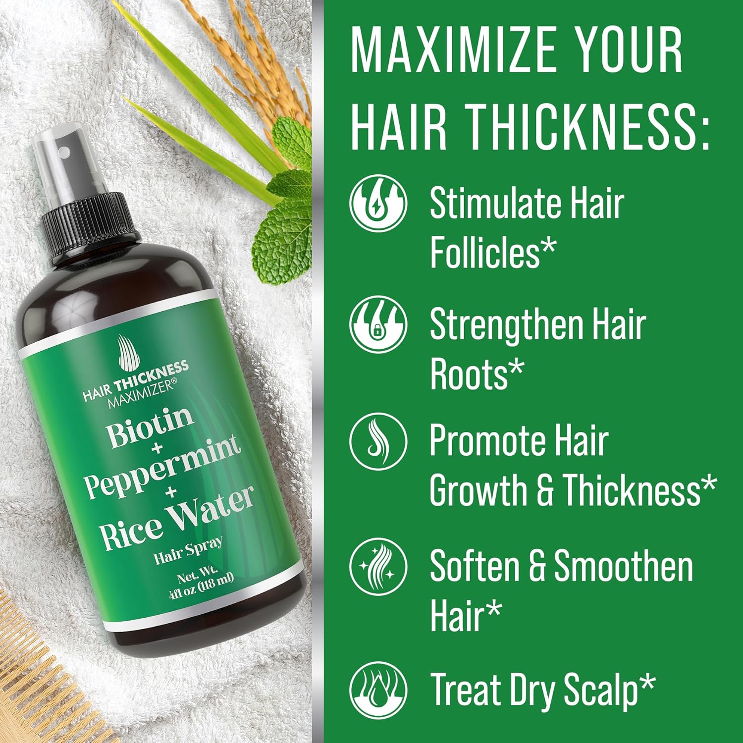 Biotin + Peppermint + Rice Water Spray For Hair Growth. Vegan Leave In Conditioner For Women, Men. Strengthens & Hydrates Thinning, Dry Hair for a Healthier-Looking Scalp