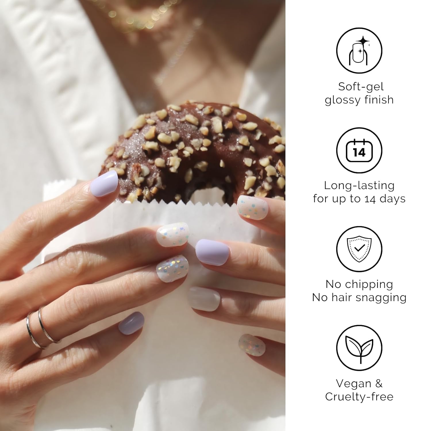 - 【SALON QULITY】 Made of real nail polish 60% precured, soft to fit all nail shapes - Nailog semi-cured strips with waterproof top gel last up to 2 weeks once cured with a UV lamp. - Our gel nails are also extremely lightweight so they do feel like your own nails!