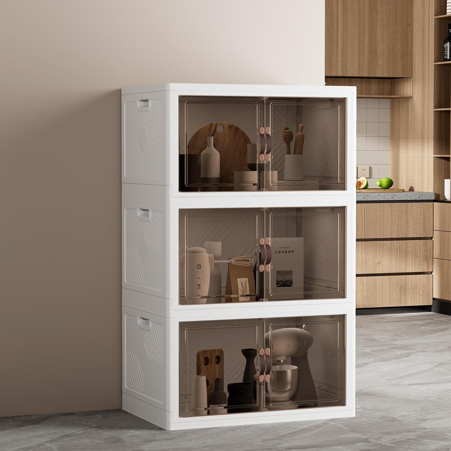JOYMOOP Folding Storage Bins Organizer, 252 Quart Collapsible Storage Boxes with Wheels and Door, Stackble Plastic Storage Container for Clothing, Books and Sundries (XXL, 21 Gal Per, 3 Tiers)