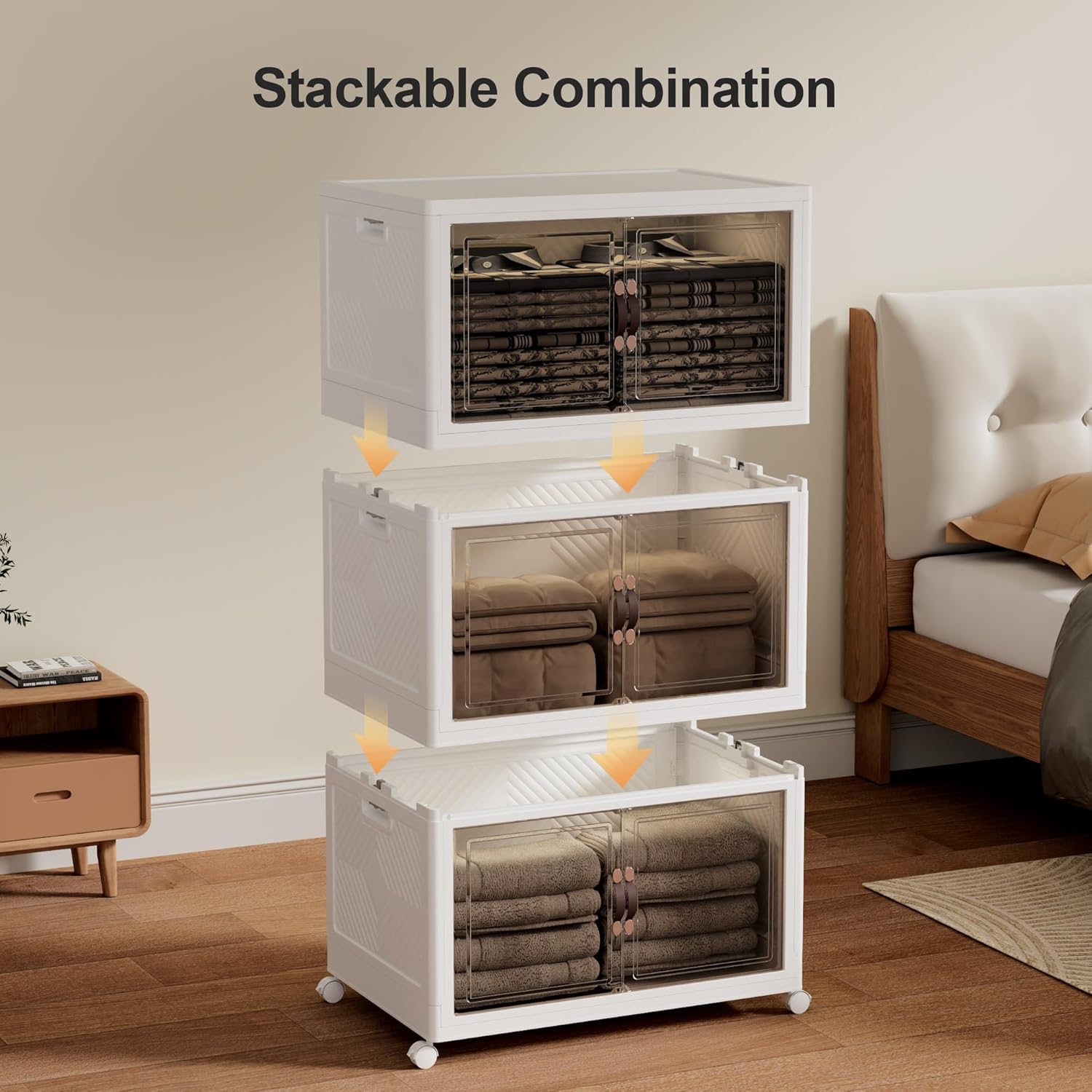 - [Foldable & Translucent] The foldable design provides more convenience. When you're not using these storage bins, you can fold them up and store them, saving more space. The translucent design of the storage box makes it easy to identify the contents of the storage box without opening it