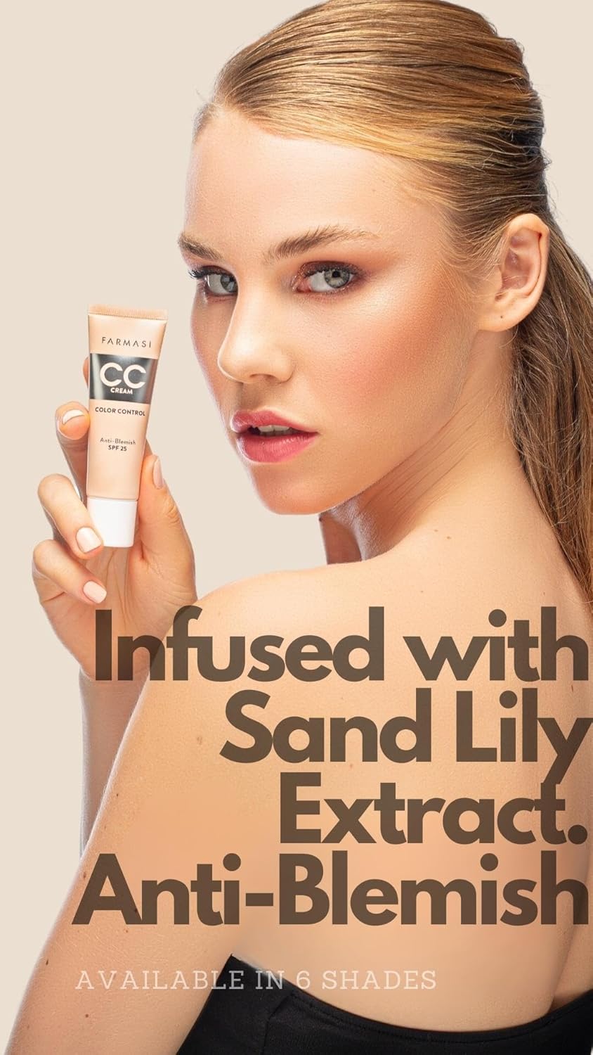 FARMASi CC Color Control Cream, Natural and Flawless Finish, Enriched Formula with Multimineral & Spf 25+, All-Day Hold, All Skin Types, 1 fl. oz, 05 Tan