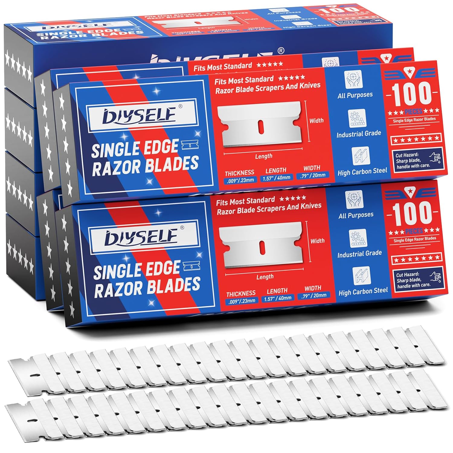 DIYSELF 800-Pack Single Edge Razor Blades Heavy Duty, Industrial Razor Blades for Scraper, Single Edge Blades for Scraping, Flat Razor Blades Refills for Labels, Decals, Boxes, Package