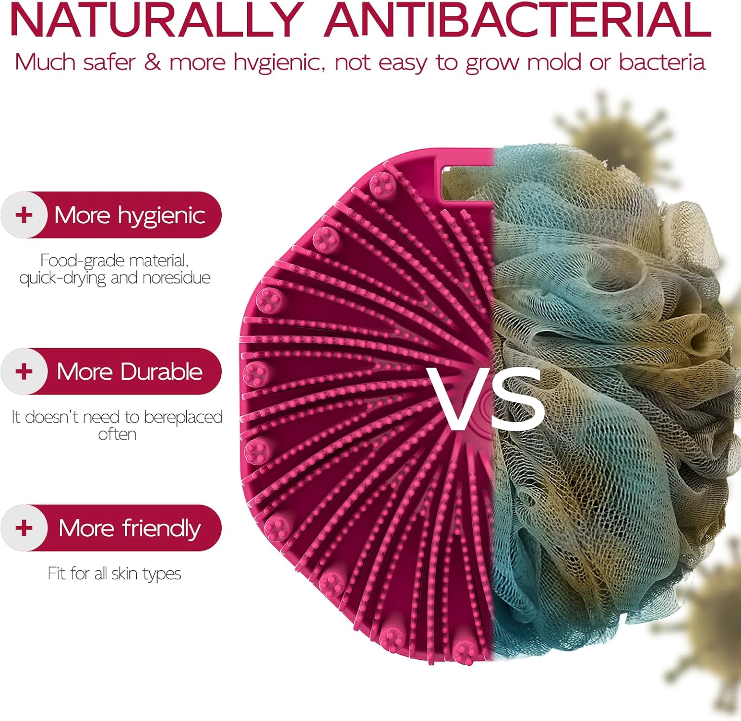 - ECO-FRIENDLY SILICONE: Crafted from safe and durable food-grade silicone, our body bath scrubber is gentle on your skin while still offering effective exfoliation and cleansing.