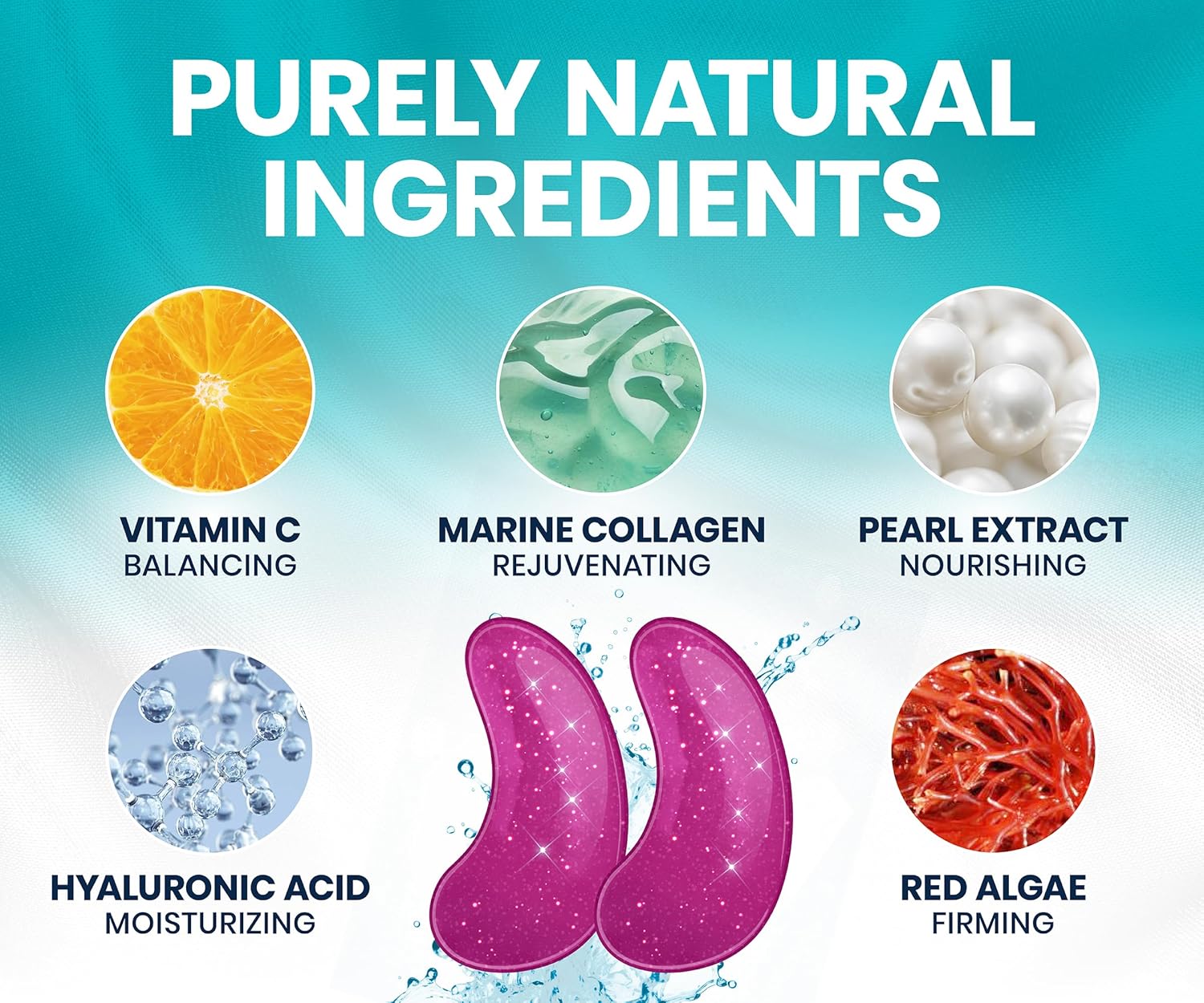 - DARK CIRCLES UNDER EYE TREATMENT FORMULATED FOR YOU – Indulge in luxury with your glitter under-eye mask patches, gentle for all skin types. Made with vitamin c, hyaluronic acid, collagen, pearl extract, and red algae. Never animal tested.