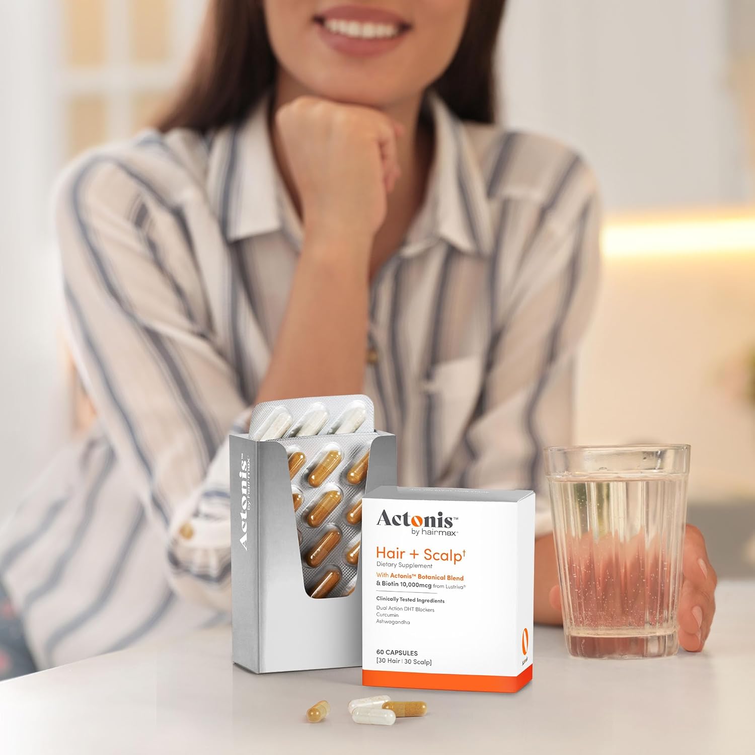 - ADVANCED HAIR GROWTH FORMULA: Actonis Hair & Scalp Nutraceutical is your go-to solution for hair thickening products for women and men. With Lustriva 10,000mcg Biotin and essential hair vitamins, this scientifically backed formula is designed to stimulate hair growth, increase thickness, and improve overall hair health in as little as 3 weeks*.