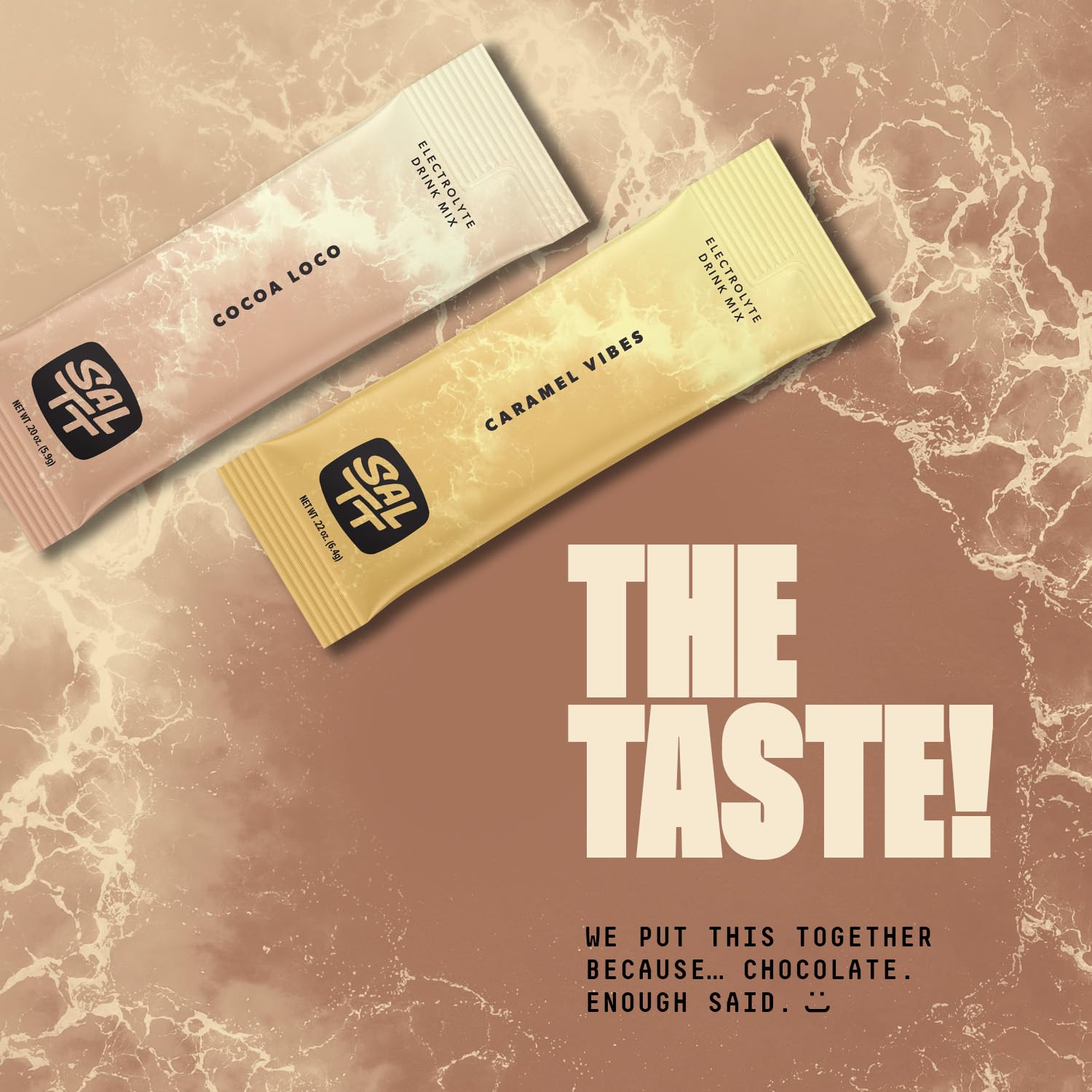 - Everyday Hydration: From the boardroom to the surfboard, SALTT electrolyte powder supports your lifestyle with the energy you need. No artificial flavors or sweeteners. Just pure electrolytes. Double-up the chocolate in this cocoa-licious variety pack!