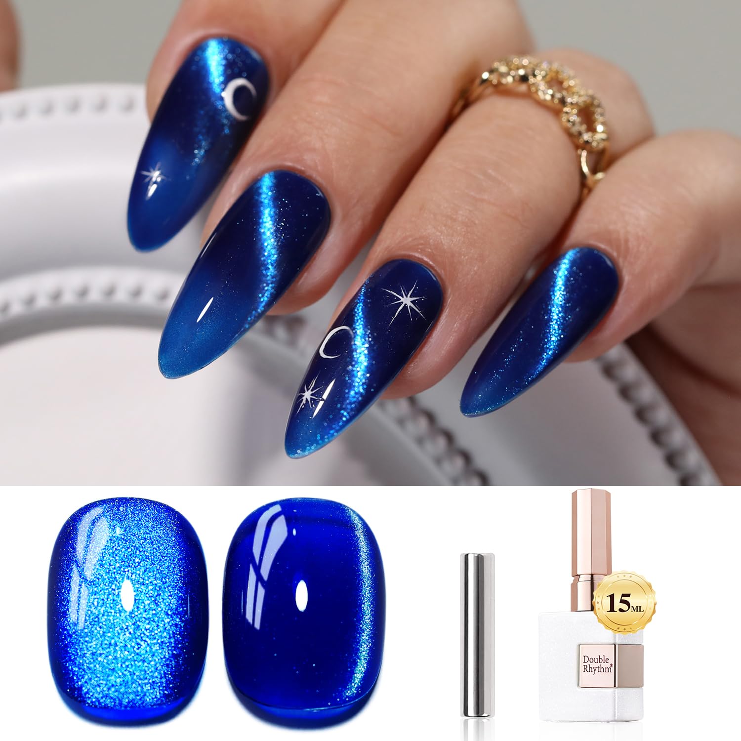 - Cat Eye Gel Nail Polish : Double Rhythm cat eye gel nail polish kit includes 1 color 15ml / 0.5 fl.oz gel nail polish. The cat eye gel can be combined with different bacse colors arbitrarily, you can get different colors nail art.Each kit comes with one magnetic tool for you to create a different cat eye style for your nails.