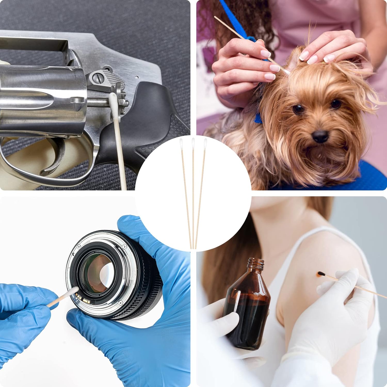 - Two types for wider use: Regular cotton sticks for daily use such as ear cleaning, makeup, beauty & personal care, nail polish removal; Additional long swabs for reaching hard-to-reach areas, such as dog ear cleaning, gun cleaning