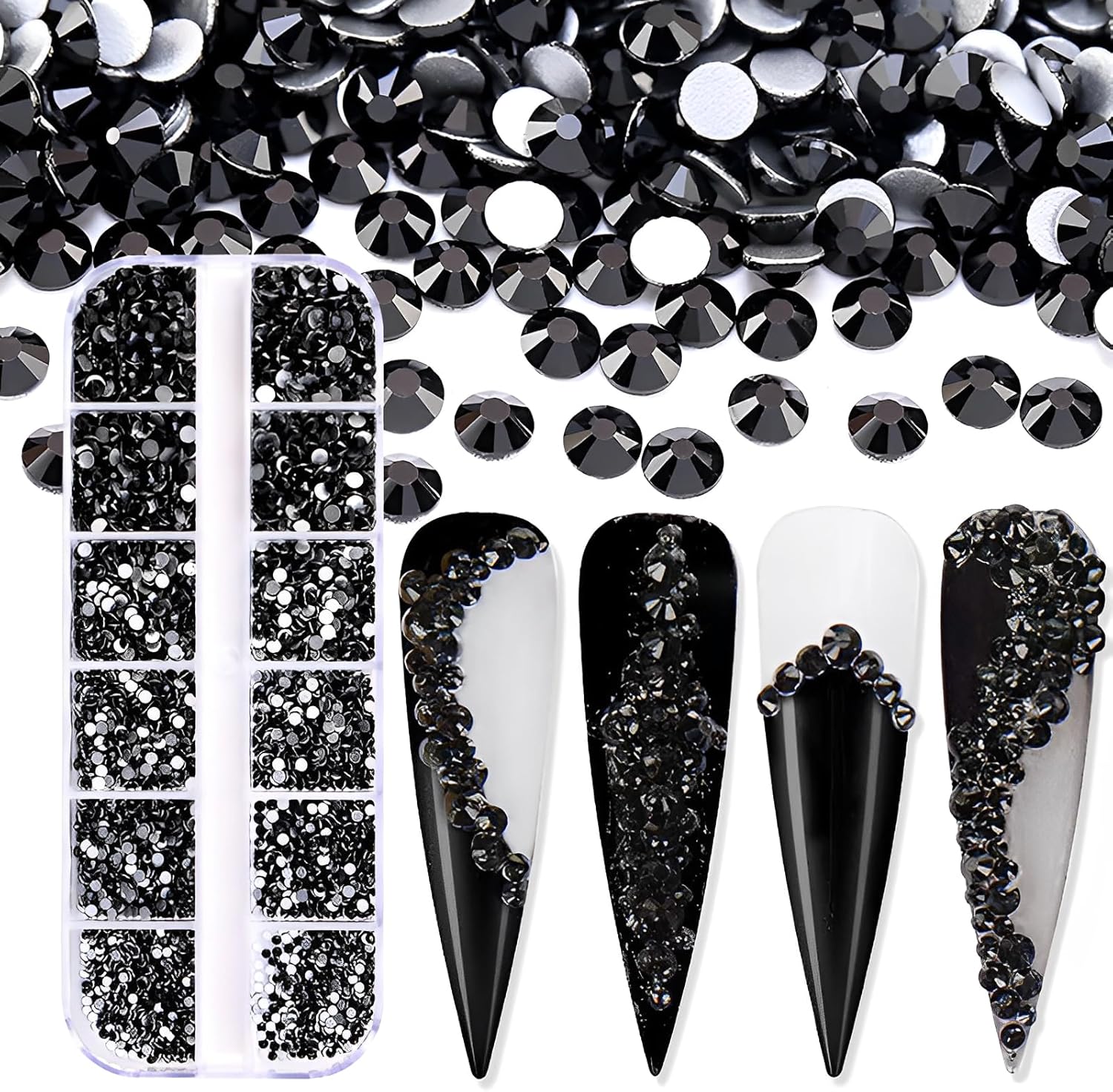 3600pcs Flatback Rhinestones Glass Charms Diamantes Gems Stones for Nail Art 6 Size ss4~ss12 Box Jet