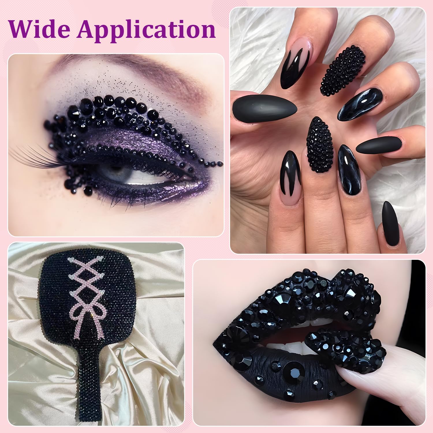 - PACKAGE CONTENT -- The package includes 1 box with 24 grids, featuring a variety of sizes: 2mm x 5 grid, 3mm x 6 grid, 4mm x 5 grids, 5mm x 5 grids, and 6mm x 3 grids, approx. 30000 pcs of 2-6mm bling-out resin rhinestones (Black). 1 tweezers and 1 pickup pen are included for easily picking up of rhinestones. 3 B7000 adhesive jewels glue for jewelry making. The large amount will support you to fulfill a number of your wonderful DIY decoration ideas.