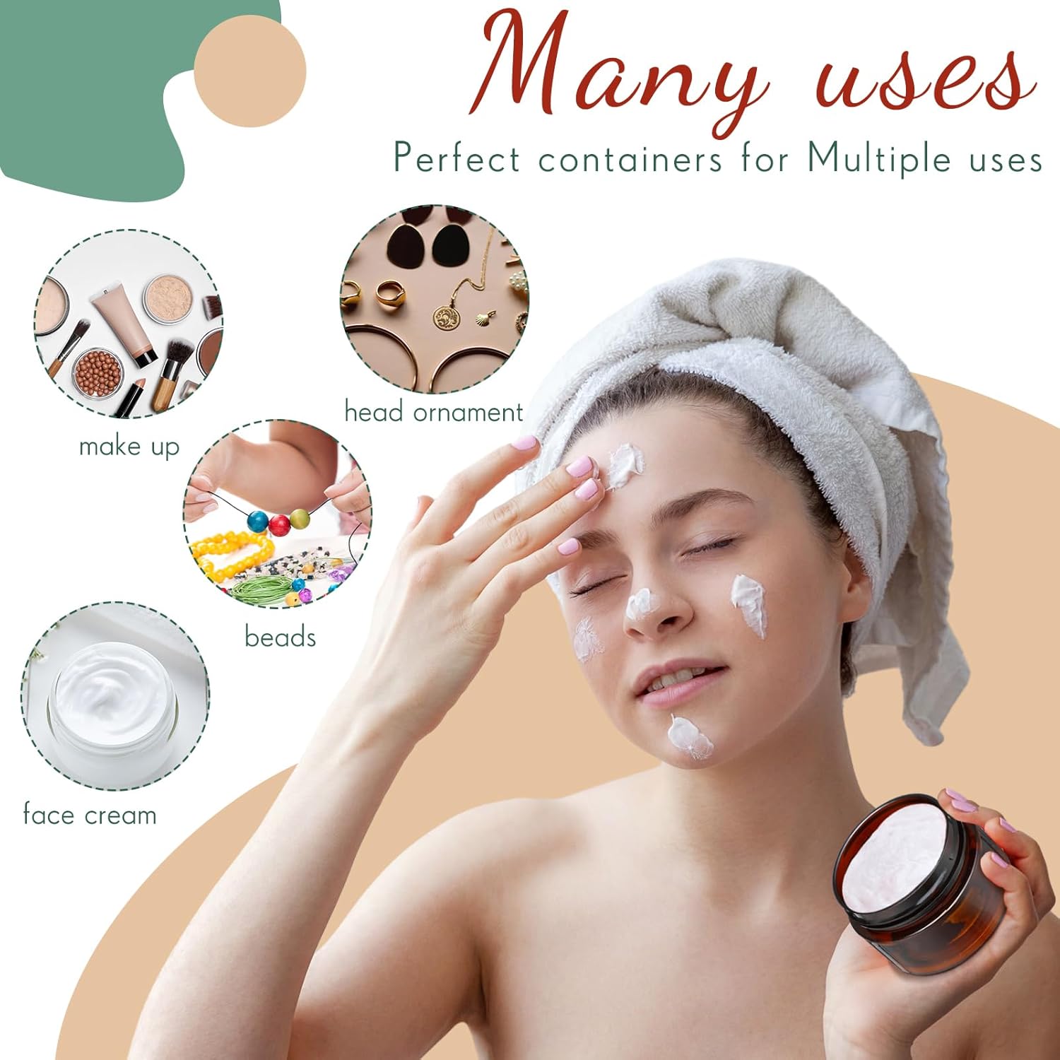 Patelai 4 Pieces Round Wide-mouth Leak Proof Plastic Container Jars with Lids for Travel Storage Makeup Beauty Products Face Creams Oils Salves Ointments DIY Making(1 Ounce,Amber)