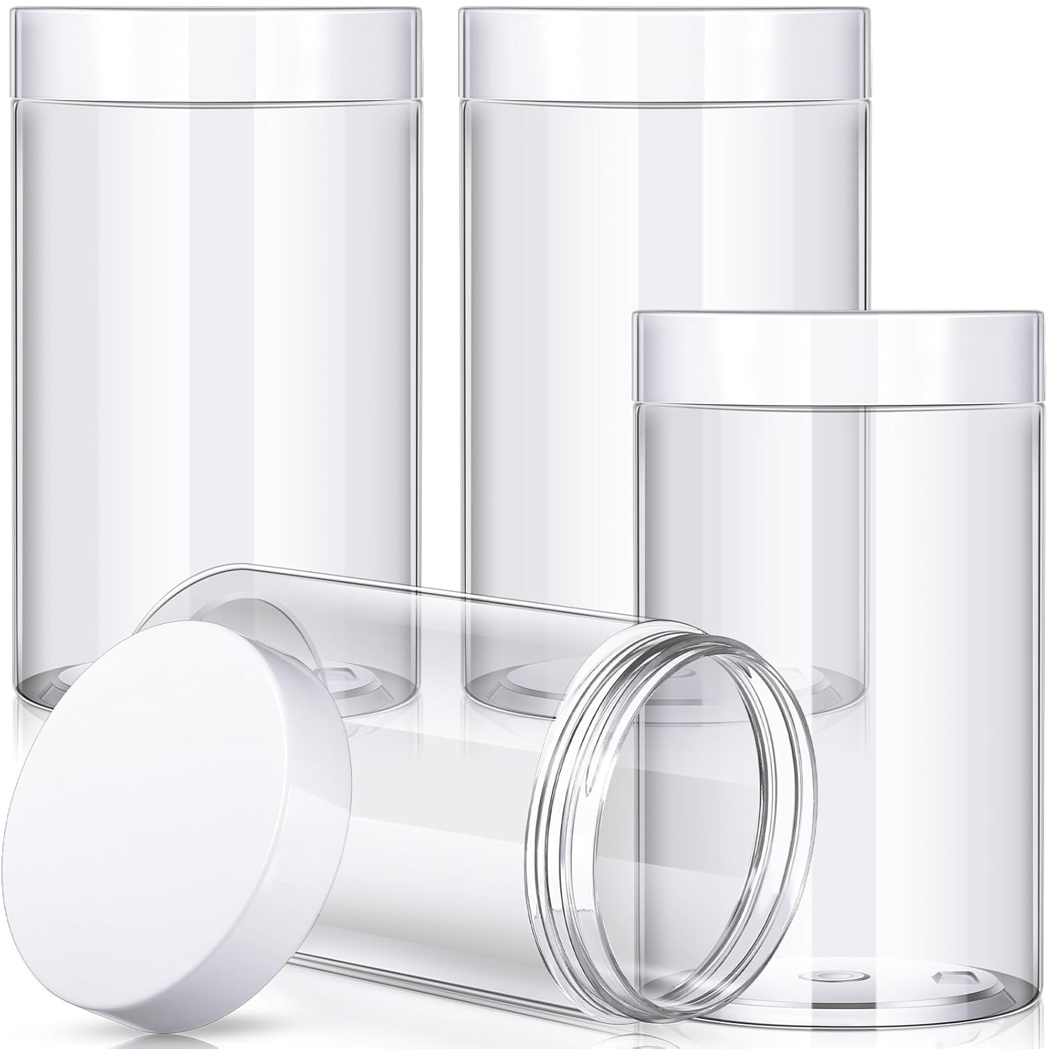Patelai 4 Pieces Round Wide-mouth Leak Proof Plastic Container Jars with Lids for Travel Storage Makeup Beauty Products Face Creams Oils Salves Ointments DIY Making(32 Ounce,White)