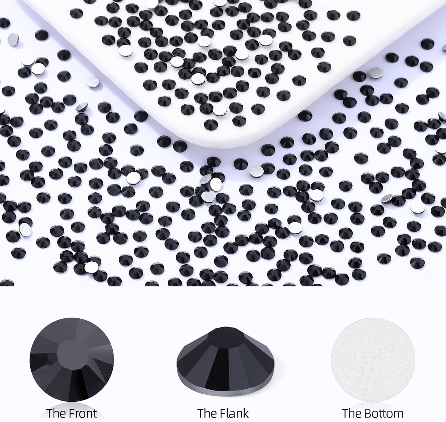 Black Flatback Rhinestones, Glass Rhinestones for Nail Art and Craft, Glue Fix, Loose Crystal Gemstones(Black, SS10, 1440pcs, 2.7-2.8mm)