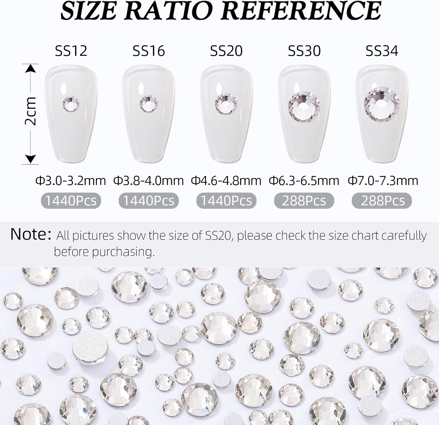 Crystal Clear Flatback Rhinestones, Glass Rhinestones for Nail Art and Craft, Glue Fix, Loose Crystal Gemstones(Crystal, SS20, 1440pcs, 4.6-4.8mm)