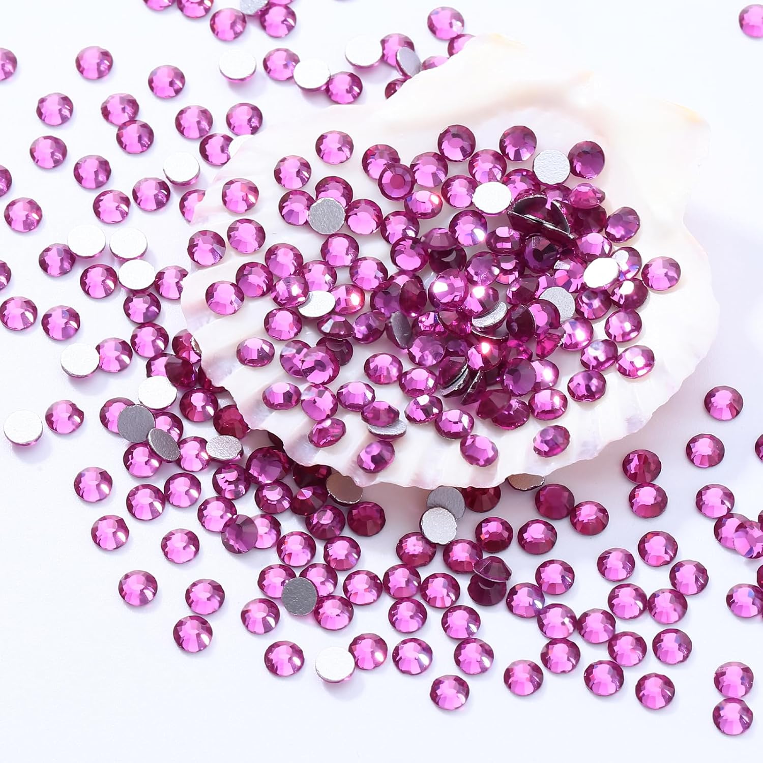 Fuchsia Flatback Rhinestones, Glass Rhinestones for Nail Art and Craft, Glue Fix, Loose Crystal Gemstones(Fuchsia, SS8, 1440pcs, 2.3-2.5mm)