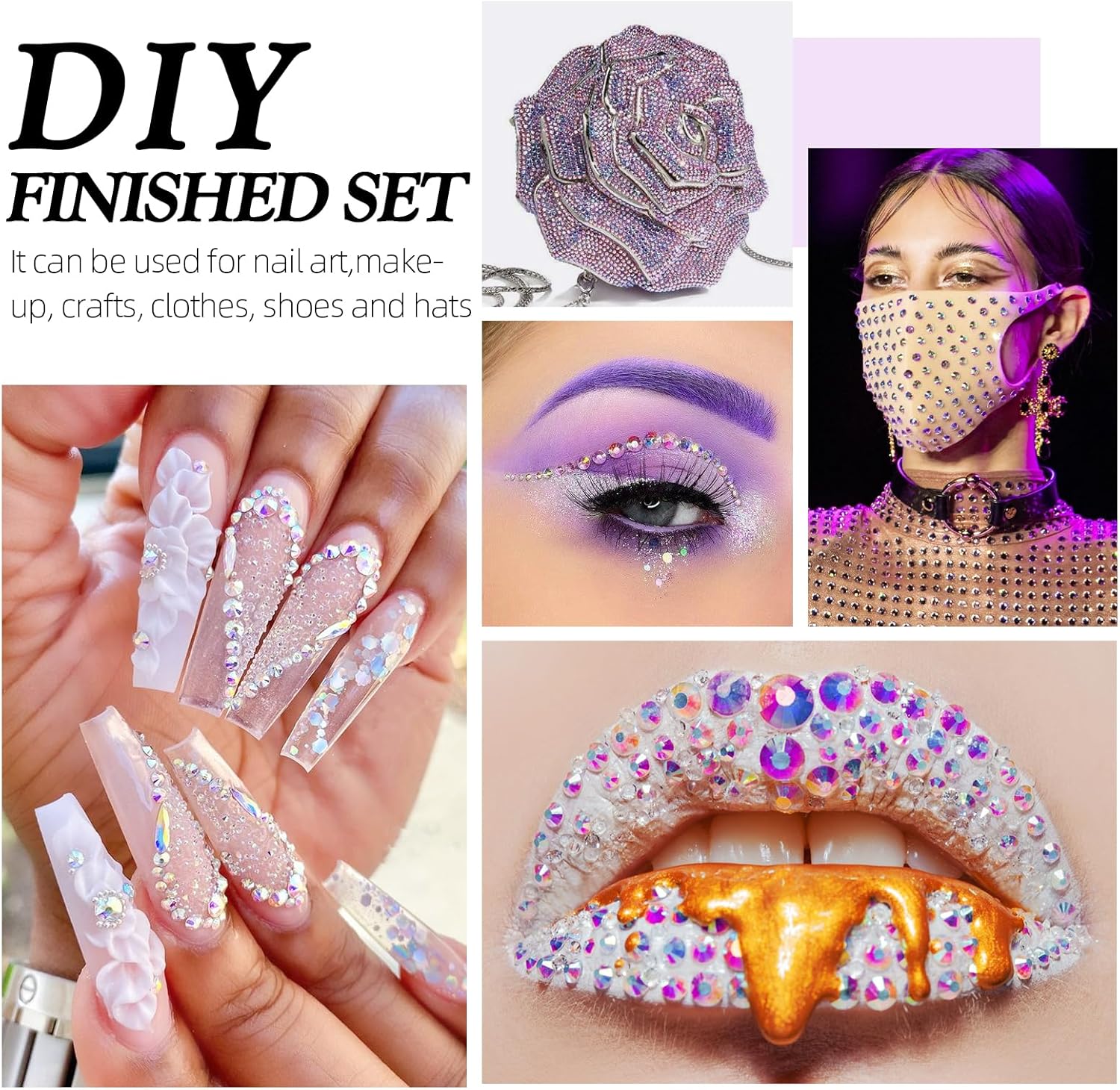 - Use tweezers and Picking Pen gem picker to pick rhinestones, There is no glue on the bottom, additional nail gel is required, or other professional glue for makeup or nails; Can use E6000/E7000 super glue to fix on crafts, art decoration; not hotfix