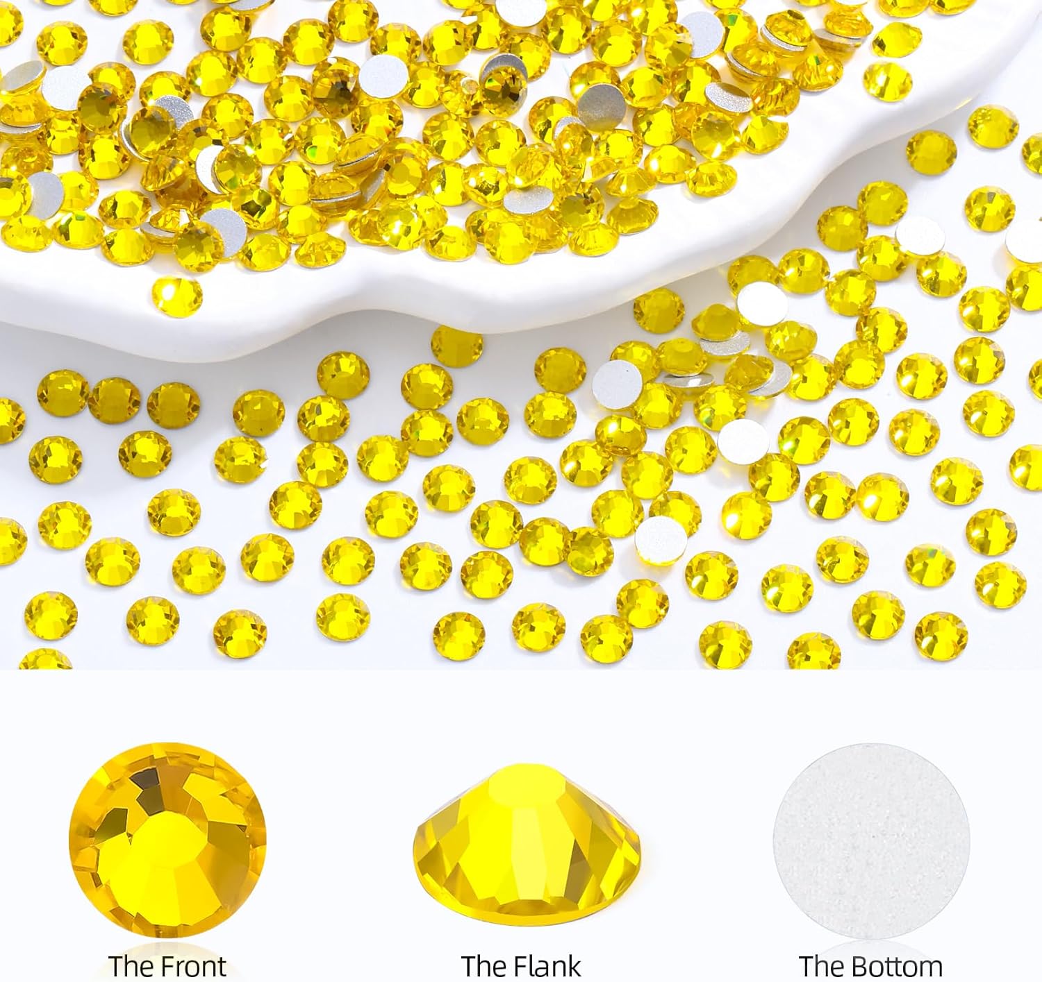 Citrine Flatback Rhinestones, Glass Rhinestones for Nail Art and Craft, Glue Fix, Loose Crystal Gemstones(Yellow, SS8, 1440pcs, 2.3-2.5mm)
