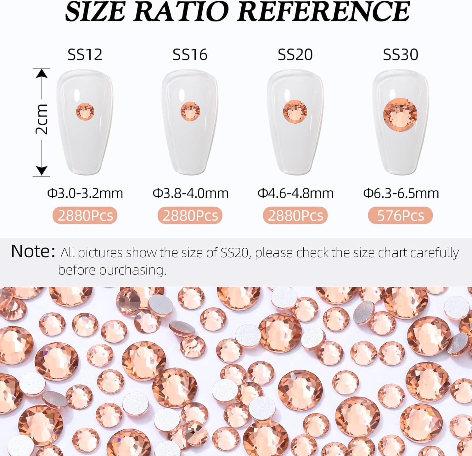 Champagne Flatback Rhinestones, Glass Rhinestones for Nail Art and Craft, Glue Fix, Loose Crystal Gemstones(Champagne, SS12, 2880pcs, 2.9-3.0mm)