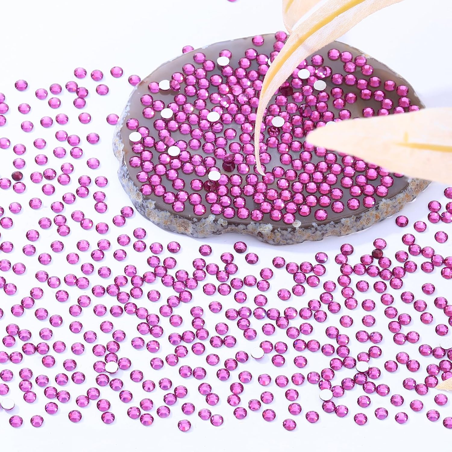 Fuchsia Flatback Rhinestones, Glass Rhinestones for Nail Art and Craft, Glue Fix, Loose Crystal Gemstones(Fuchsia, SS6, 2880pcs, 1.9-2.0mm)