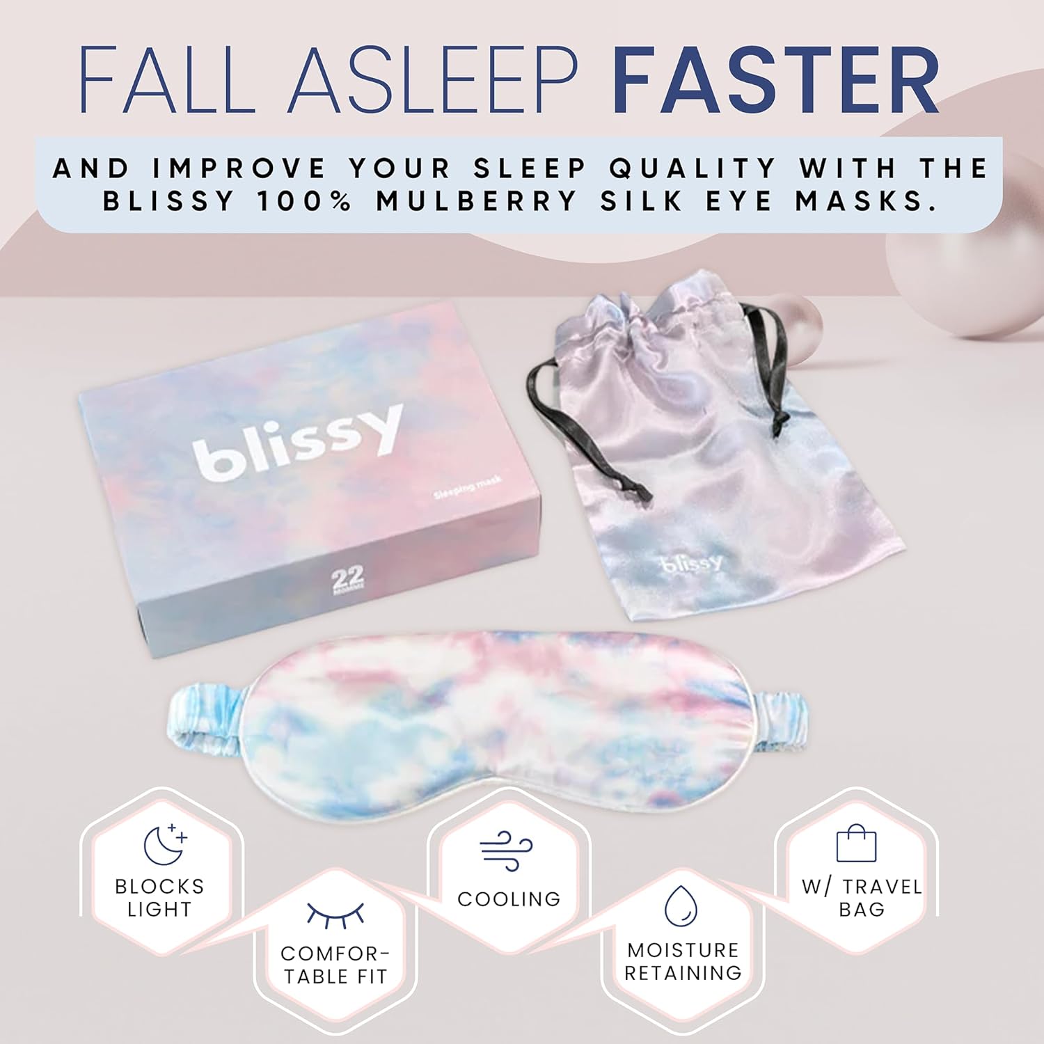 Blissy Silk Sleep Mask - Silk Eye Sleeping Mask for Women & Men for Total Blackout - 100% Pure Mulberry Silk, 22 Momme 6a Fibers - Blindfold Silk Sleep Mask Side Sleeper Eye Cover (Tie Dye)
