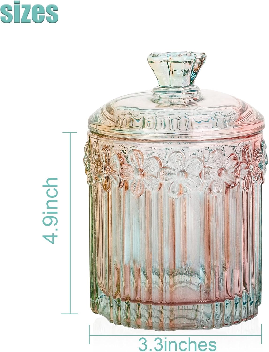 rejomiik 2 Pack Qtip Holder Glass Apothecary Jars with Lids Set Bathroom Canisters Dispenser Organizers and Storage for Cotton Swabs, Balls, Pads, Floss Picks, Candy, Rainbow