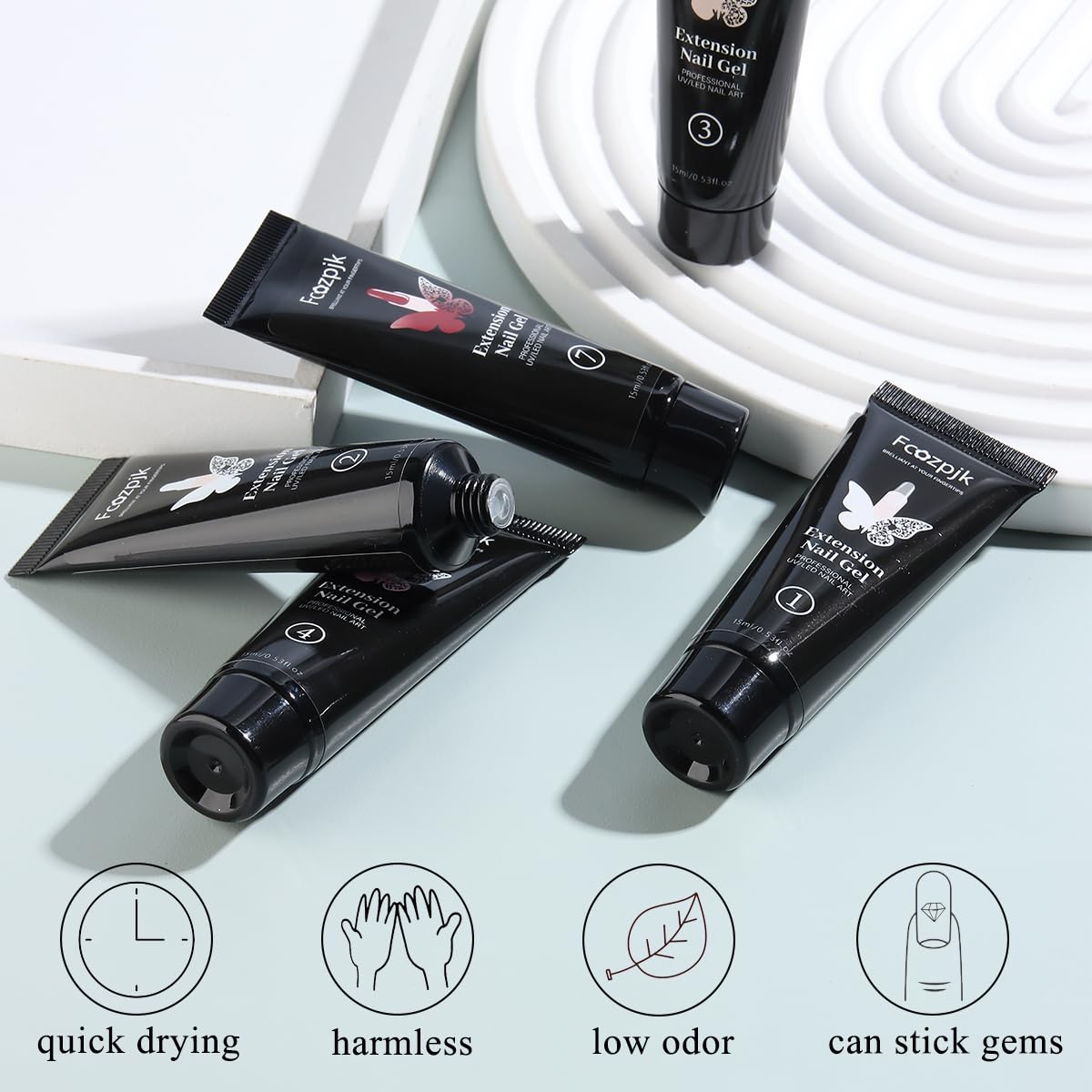 - Included Components : 12pcs 15ml poly nail extension gel, forms, clip, base coat, top slip solution