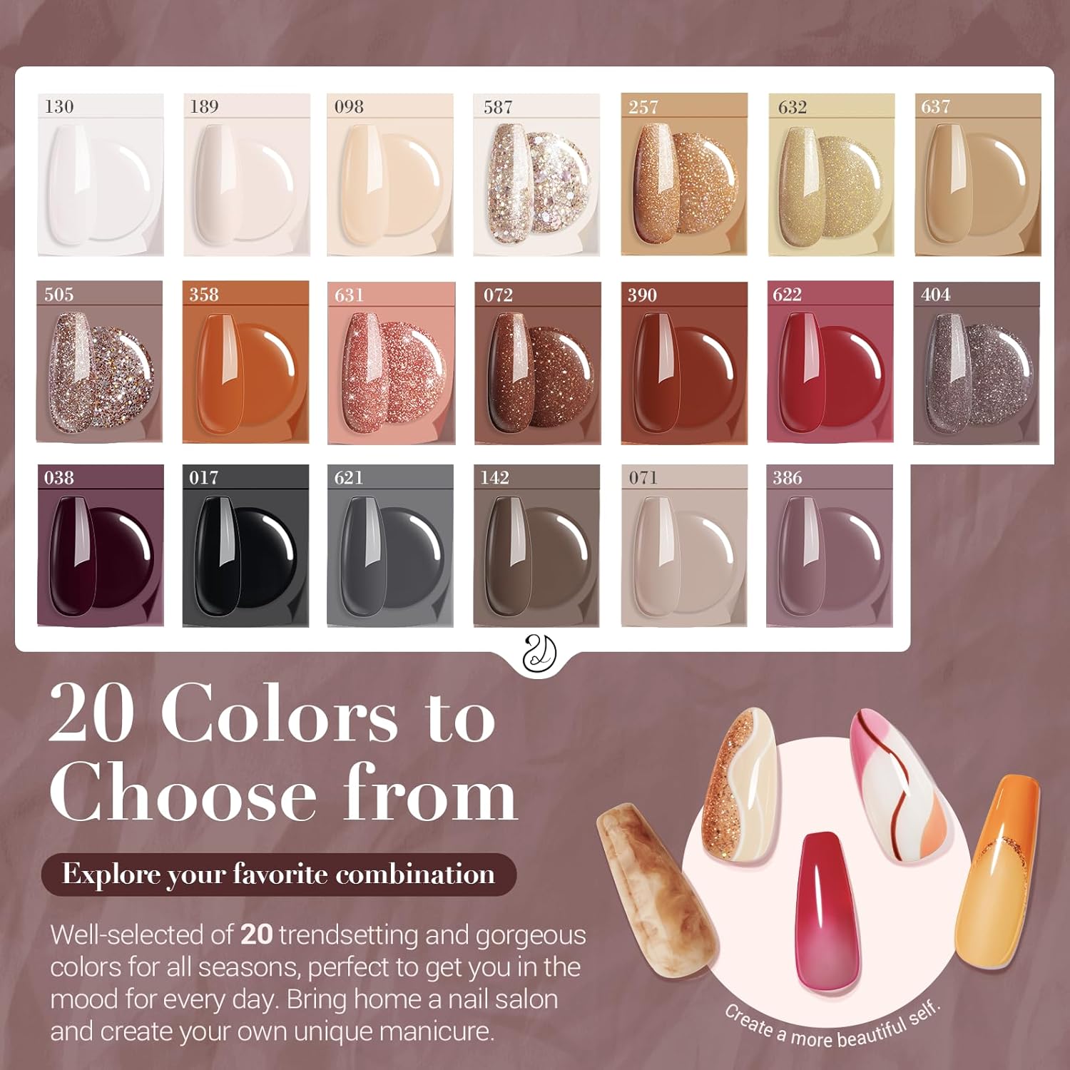 AZUREBEAUTY Fall Dip Powder Nail Kit 20 Colors Glitter Nude Black Grey Winter 31 Pcs Dip Powder Liquid Set with Top/Base Coat Activator for French Nails Art Manicure DIY Salon Women Gift
