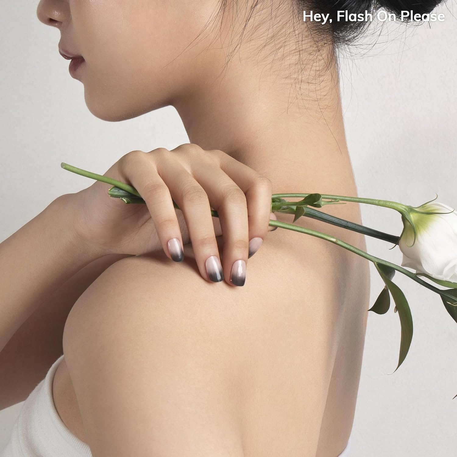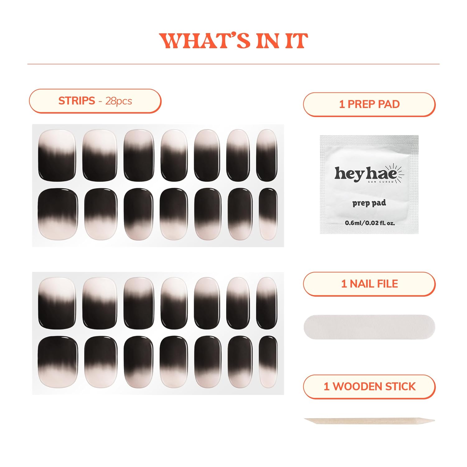 Semi Cured Gel Nail Strips | No LED Lamp Needed | Ombre, Black, Pink | Easy Apply & Remove, Salon Quality | Includes 28 Strips, 1 Prep Pads, Nail File & Wooden stick - Hey, Flash On Please