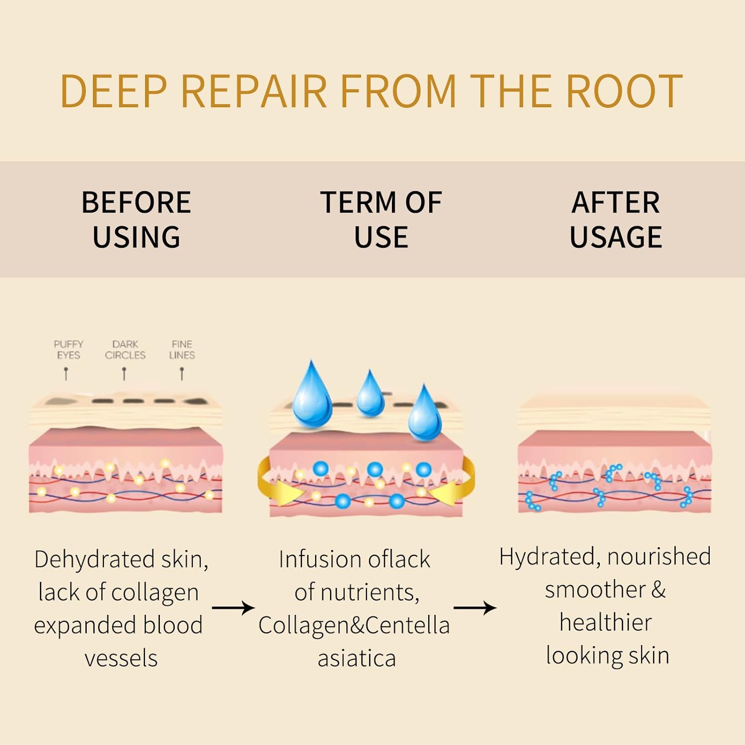 - SAFE & EFFECTIVE - Our eye masks are formulated with collagen, 24K gold and a variety of natural ingredients that are 100% harmless, gentle yet effective, and quickly penetrate the skin's underlying layers. Suitable for all skin types. All you need to stay beautiful is a gold eye mask.