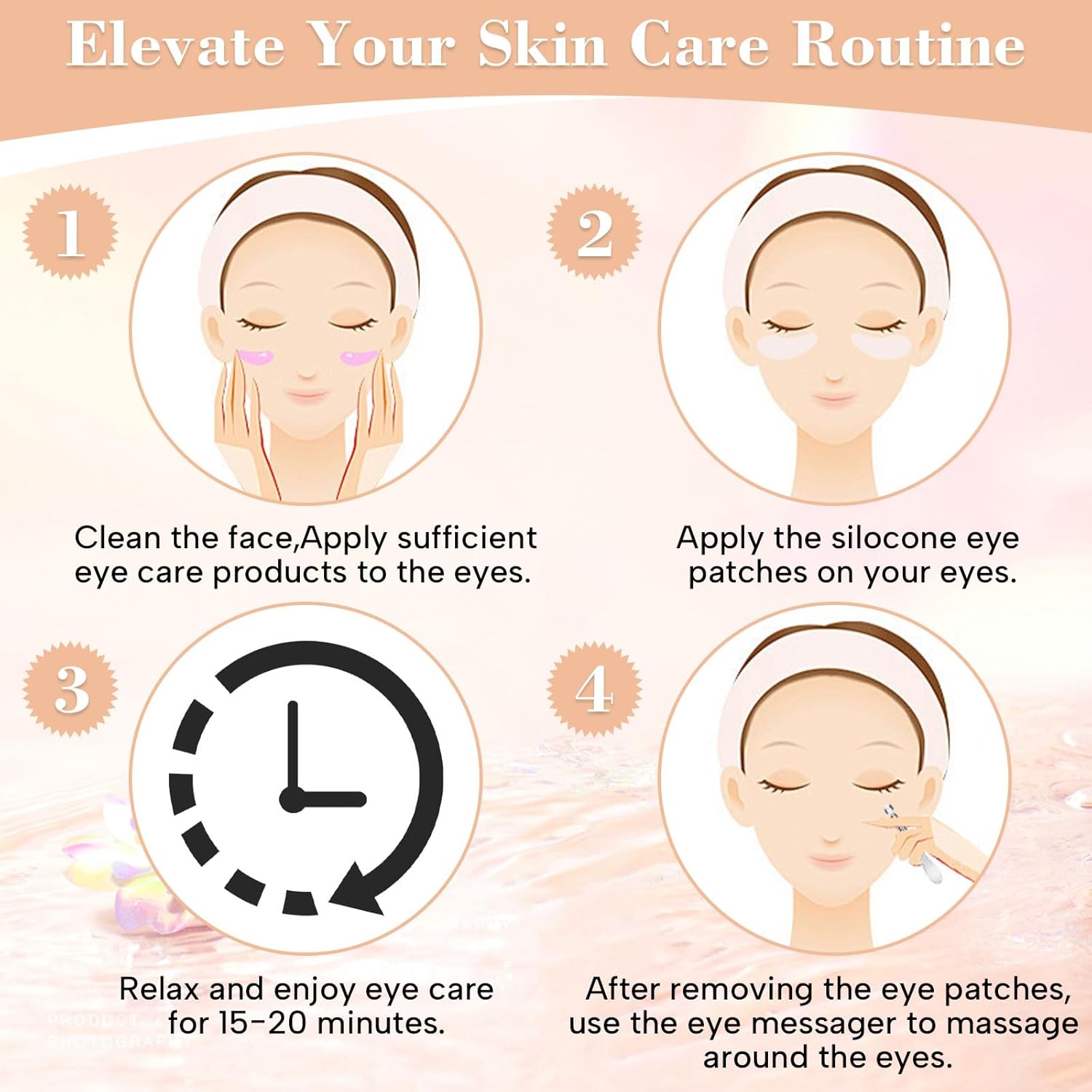 Under Eye Patches Silicone - 2 Pcs Reusable Eye Patches, Eye Patches Plump Fine Lines & Wrinkles with Metal Eye Cream Applicator, Tin Case