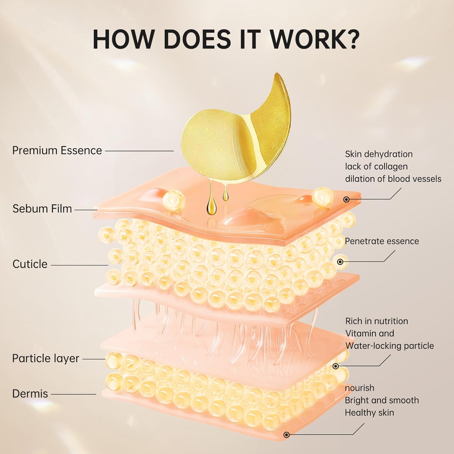 - 【Effective Treatment】Made of professional and trustworthy formula, this gold eye masks can not only help you fade fine lines, reduce dark circles, puffiness and other eye problems, it can also deeply nourish and nourish after long-term use. Repair damaged skin and be a good helper for your skin management.